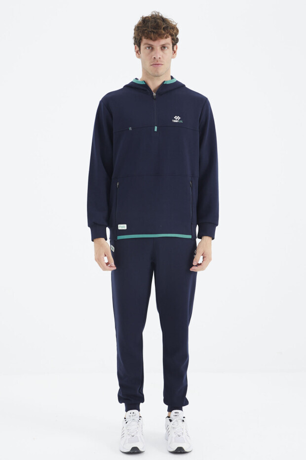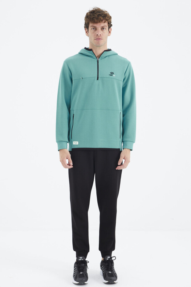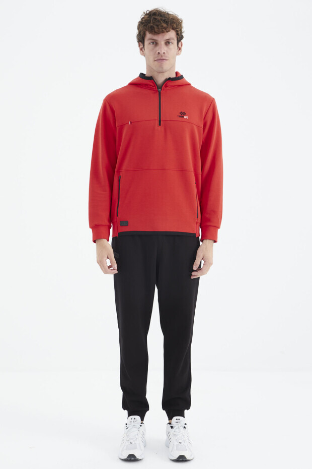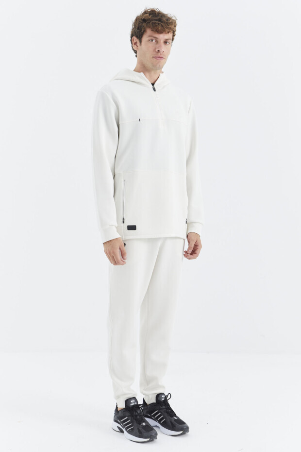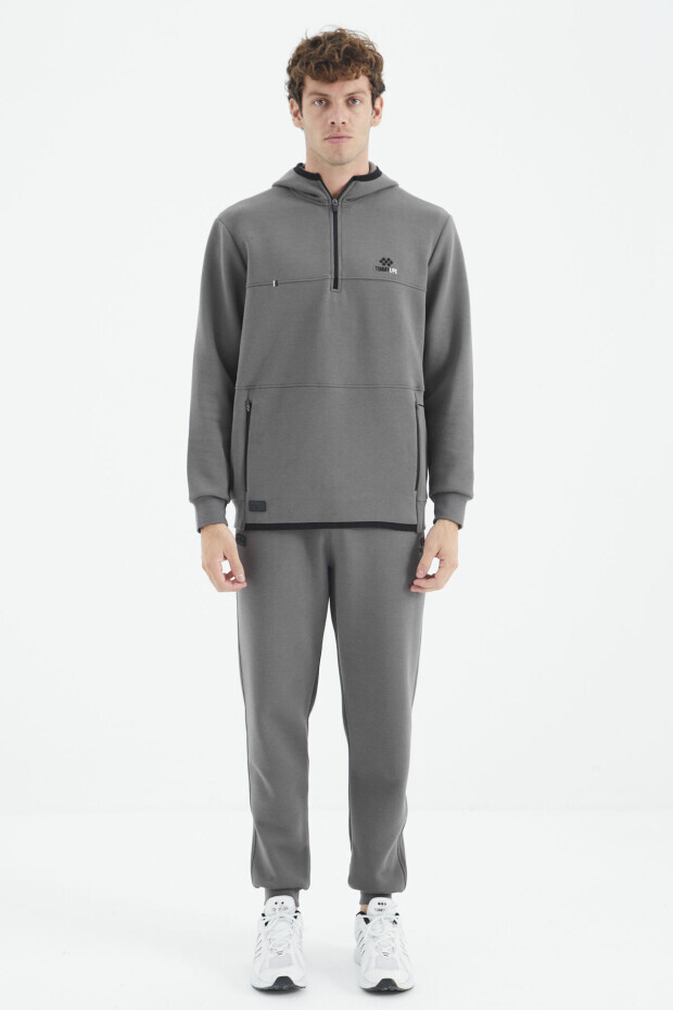 طقم رياضي رجالي بغطاء للرأس باللون الرمادي مع تفاصيل نصف سحاب وجيب - 85222