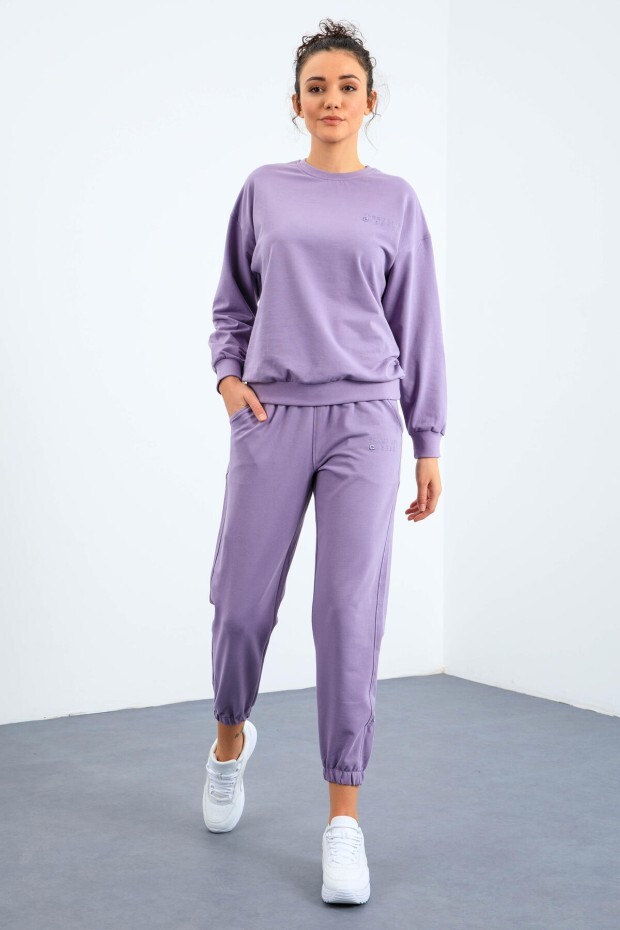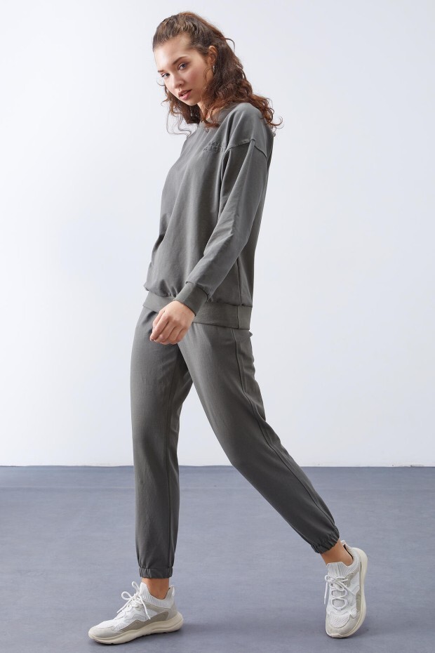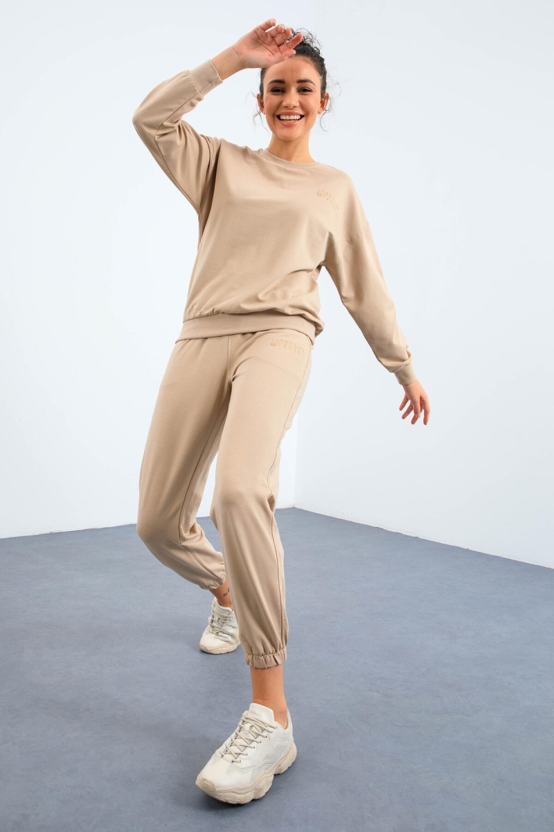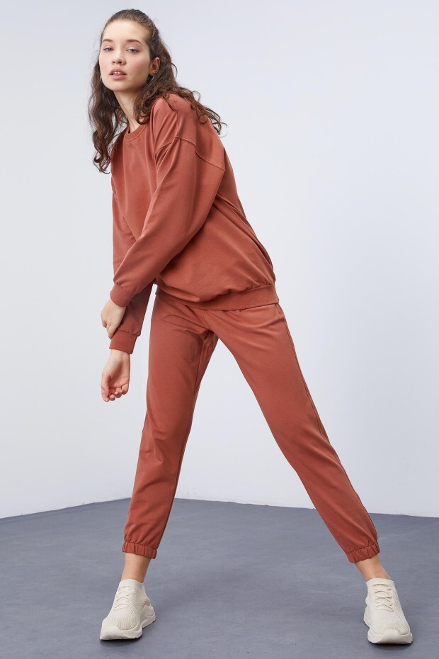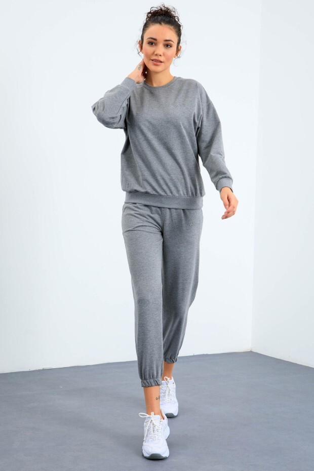 بدلة رياضية نسائية بأرجل مرنة كبيرة الحجم برقبة على شكل حرف O - 95287