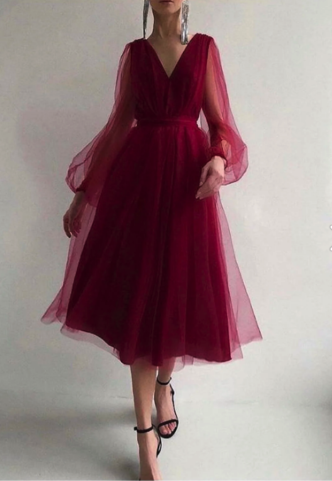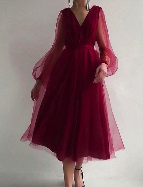 فستان سهرة نسائي من Madame Jasmin برقبة على شكل V من التول ، فستان تخرج