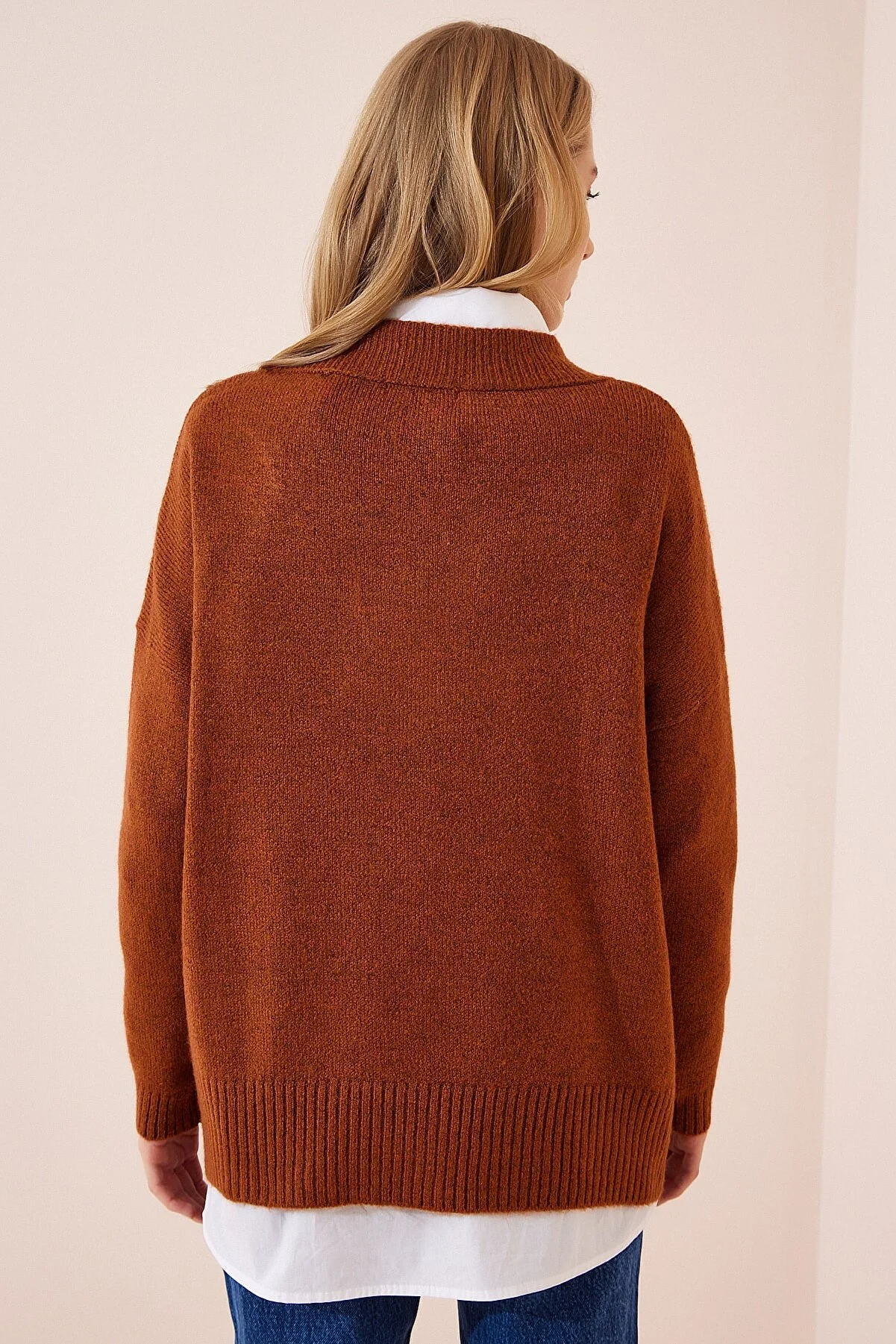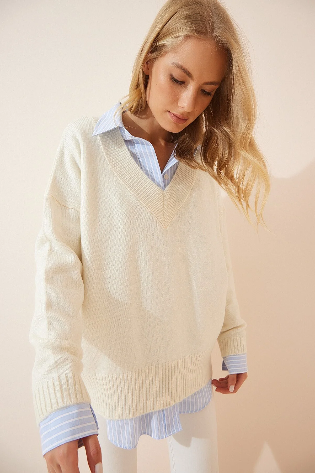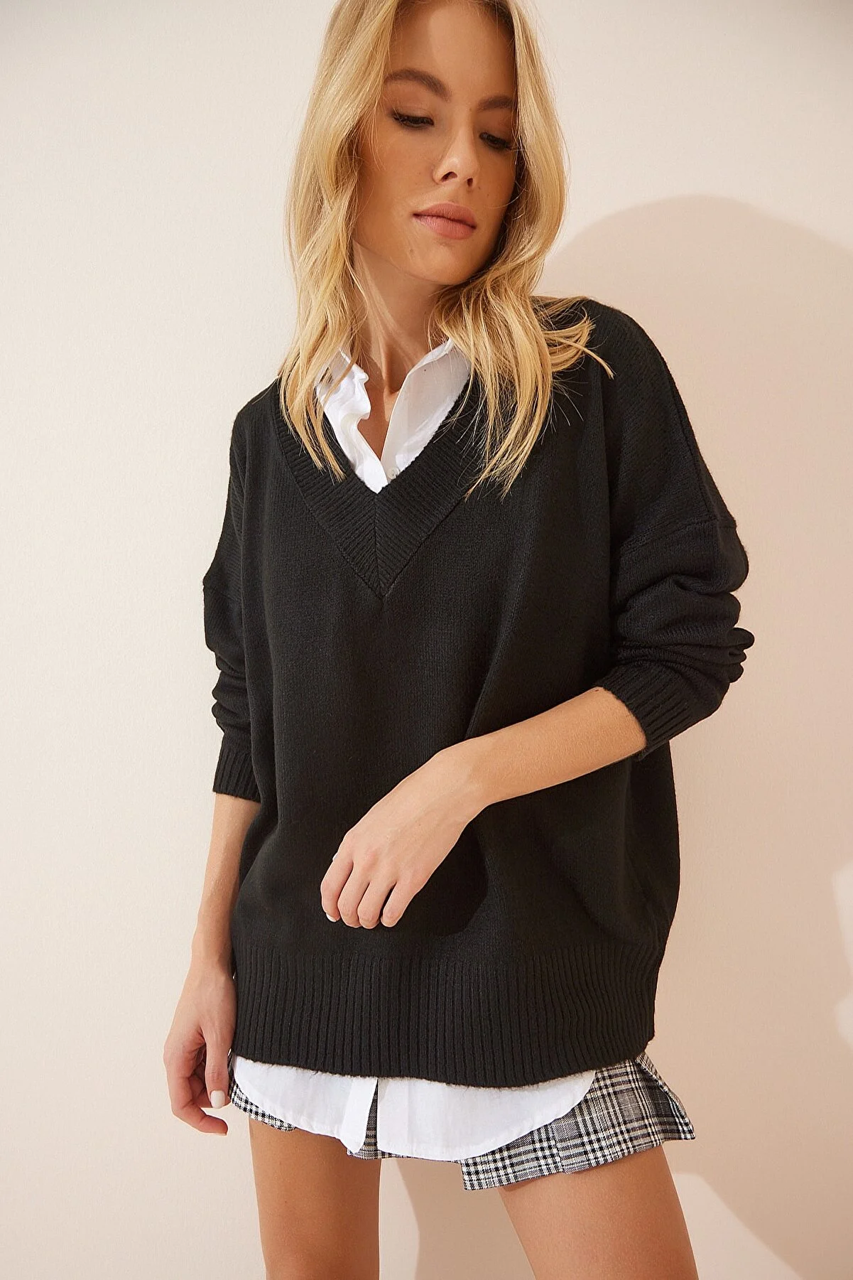 - Style: V-neck, stretchy, very soft textured oversize knit sweater