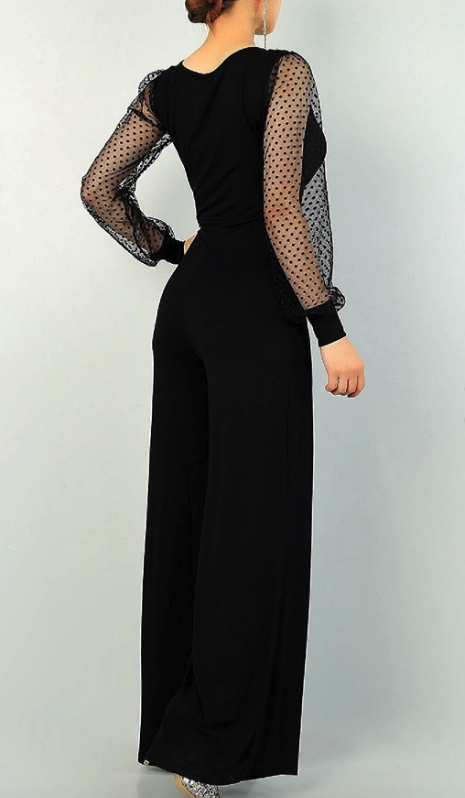 فستان سهرة نسائي أسود مرن مرن وأكمام من قماش الجيرسيه من التول وياقة مزدوجة الصدر فستان سهرة 70042 مقاس واحد يظهر رقيقًا.