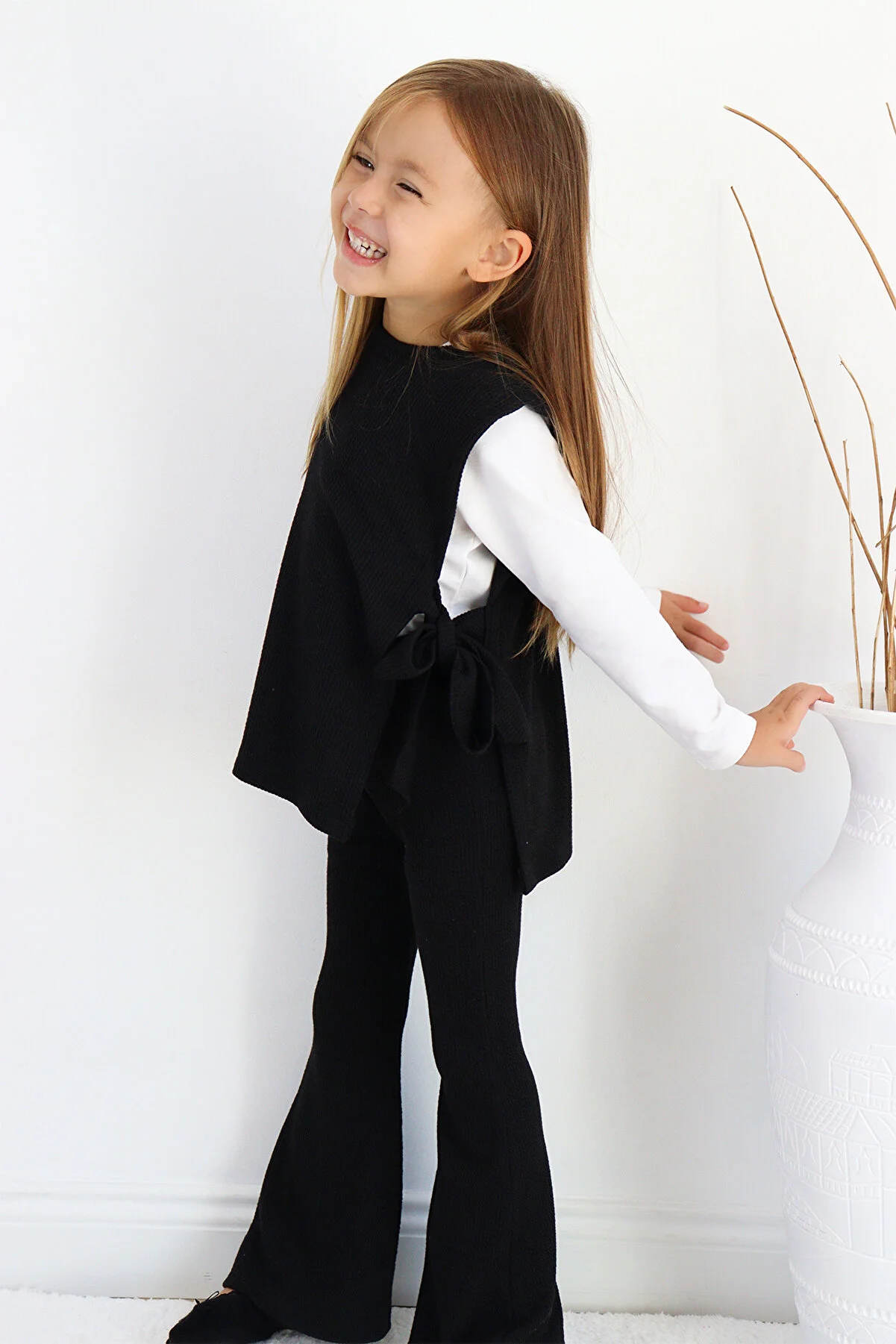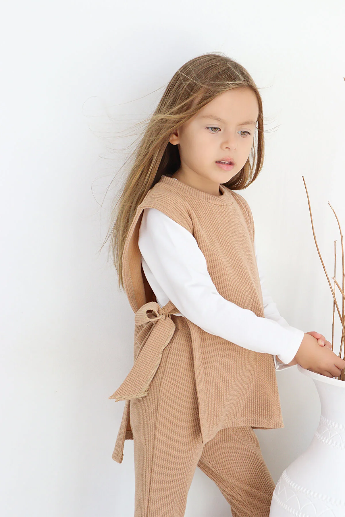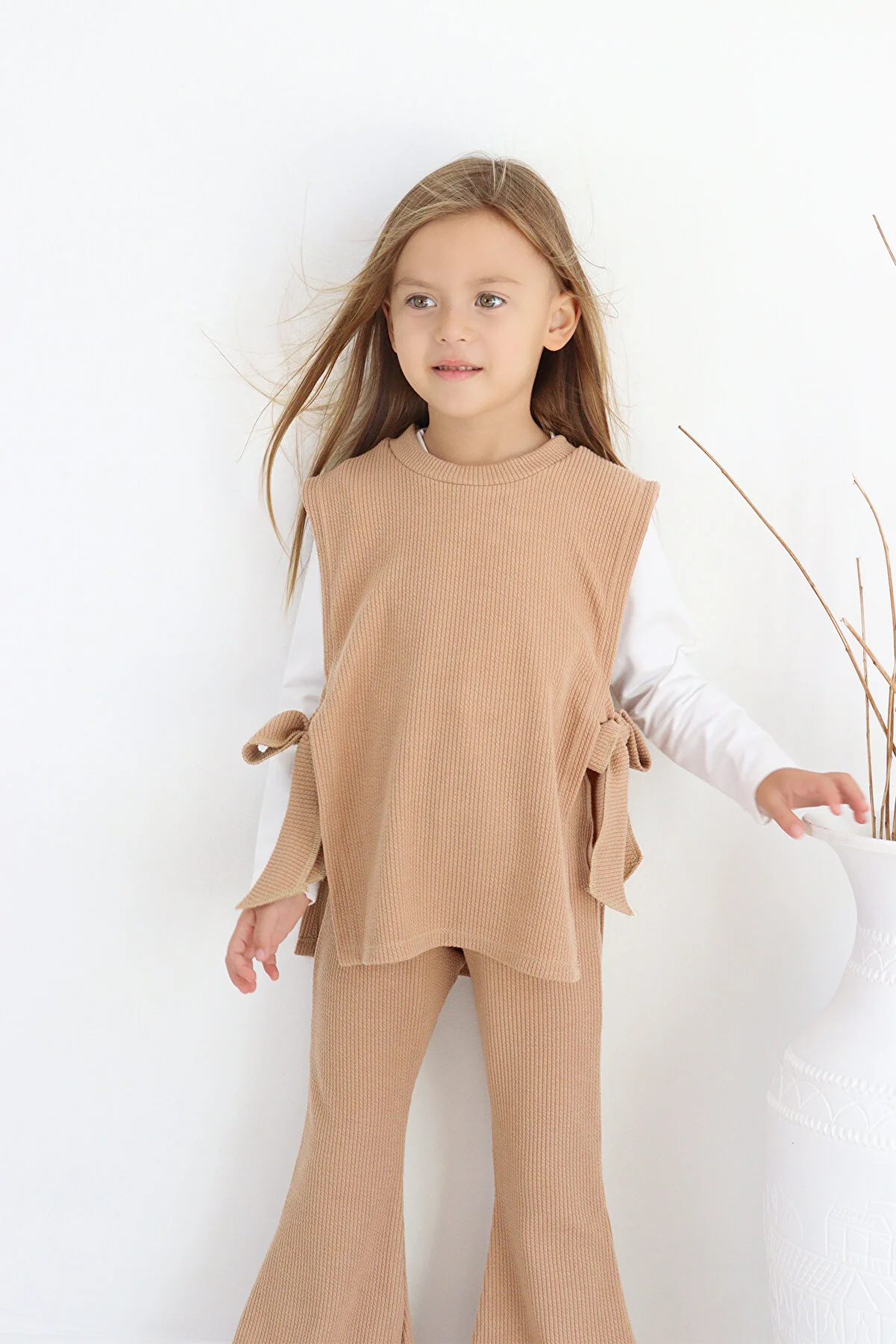 Girl Child Simena Brown/Black Tie Detail Top Spanish Bottom Top Tracksuit Set TKM-0195
