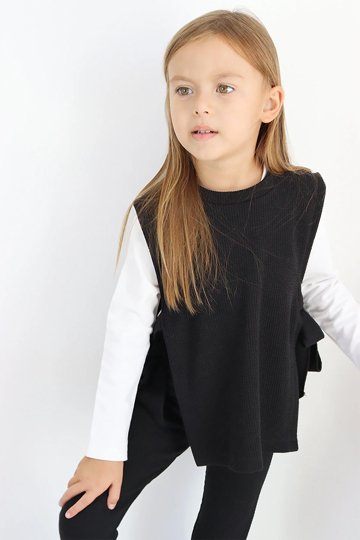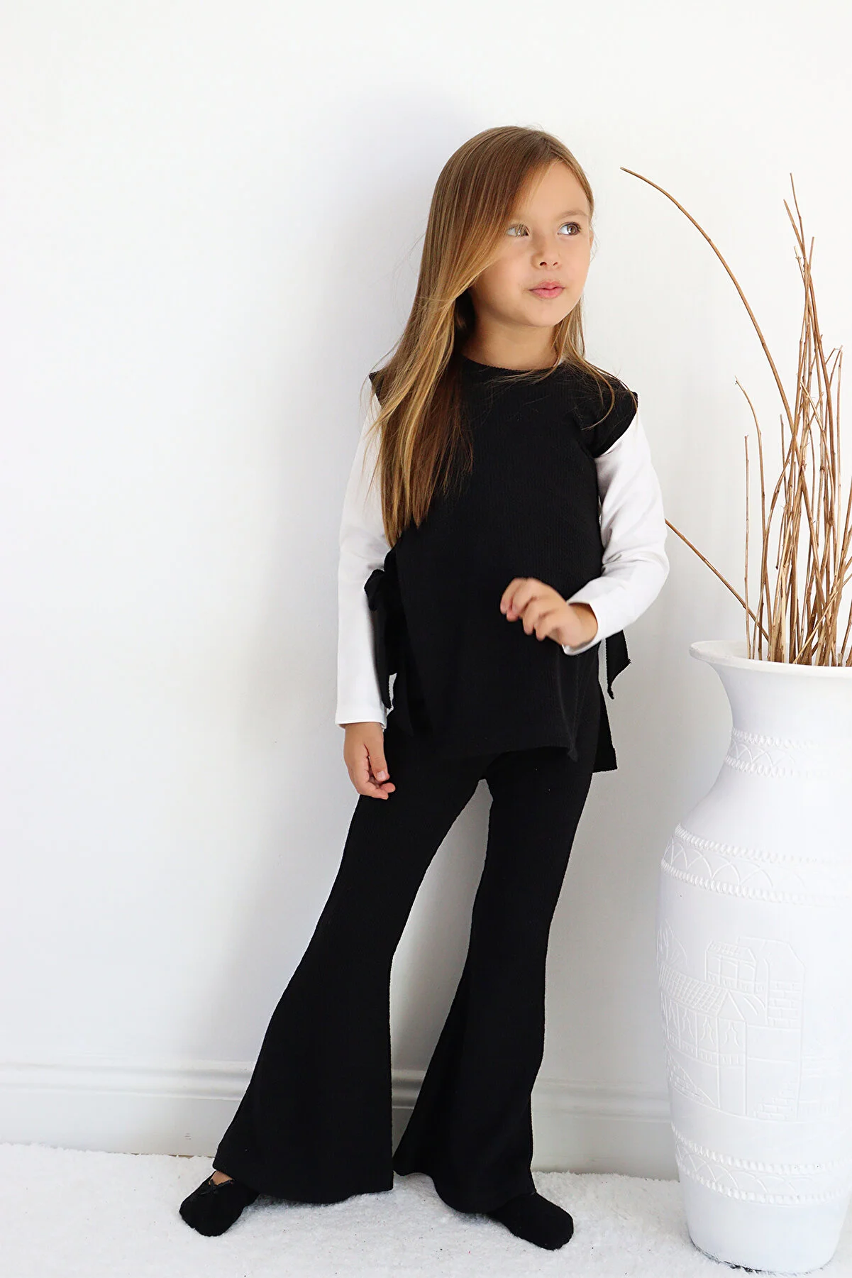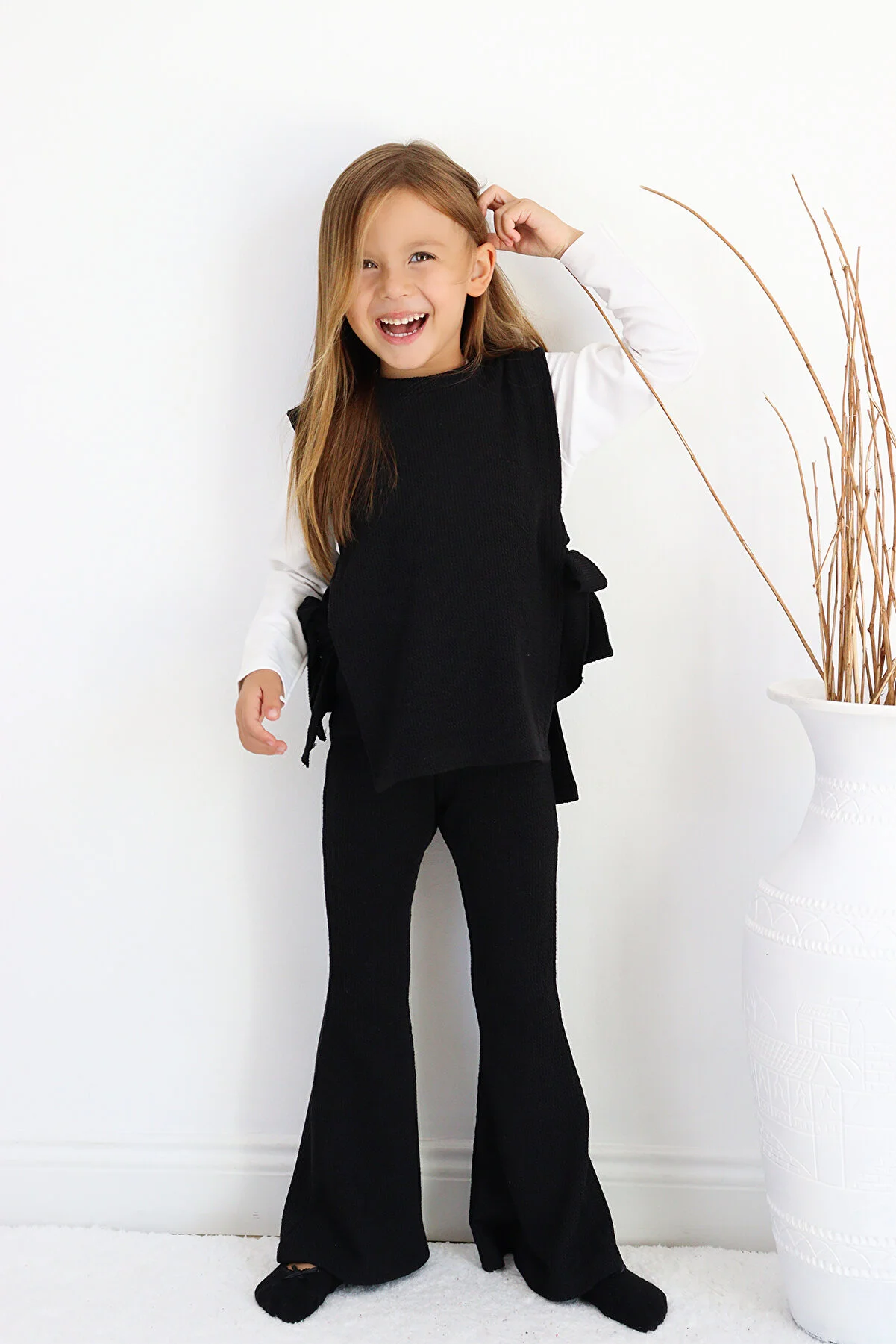 Girl Child Simena Brown/Black Tie Detail Top Spanish Bottom Top Tracksuit Set TKM-0195