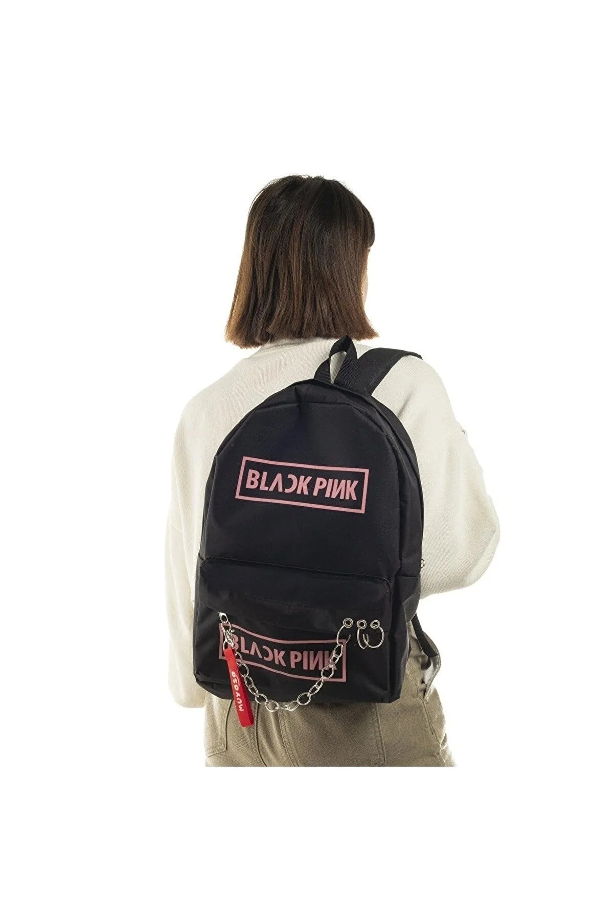 - Black Pink Pierced Chain Backpack: An ideal product for daily use and school, featuring a stylish and practical design with a spacious interior and two compartments. Made with high-quality materials and proudly produced locally. Size: 42 cm in height, 37 cm in width.