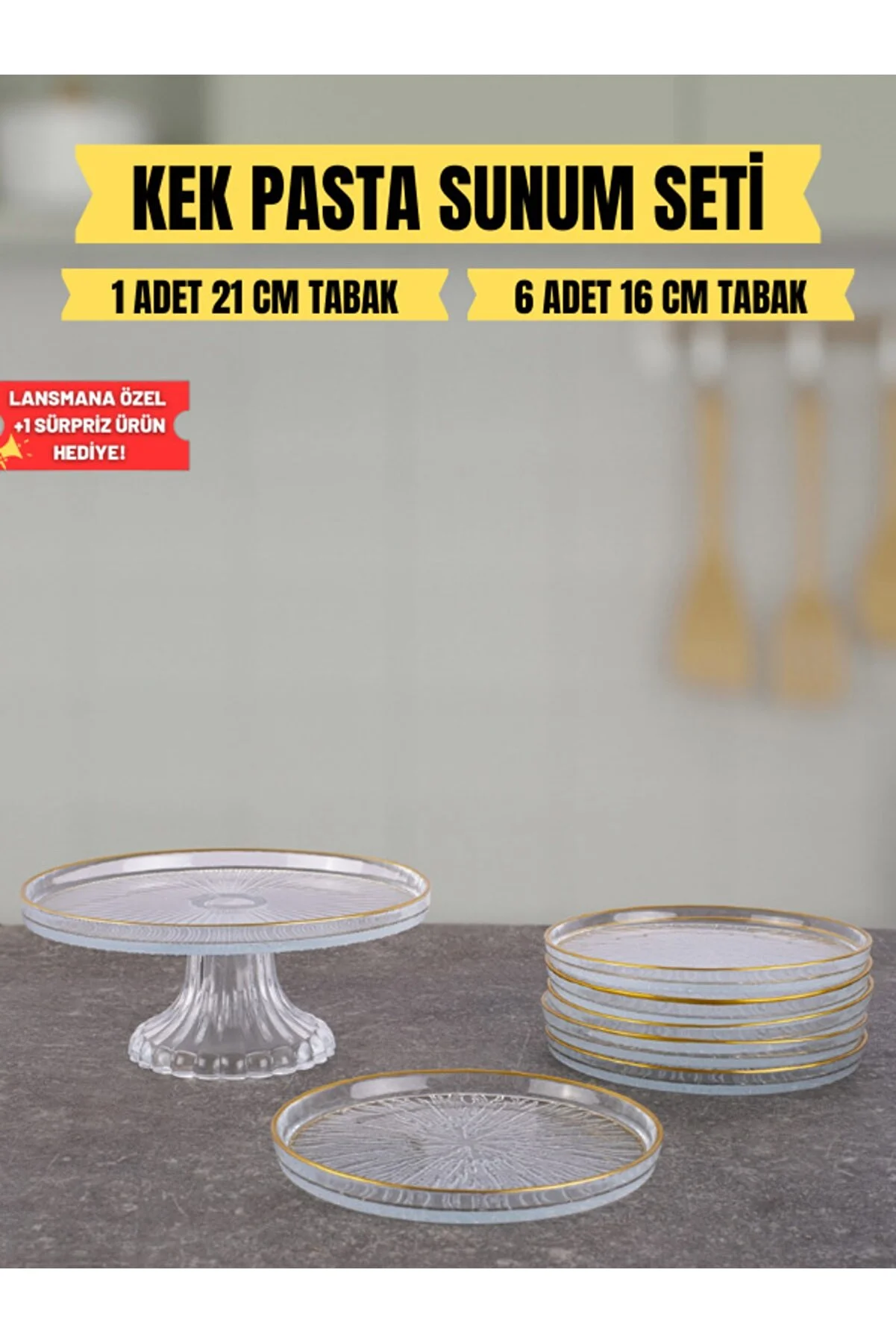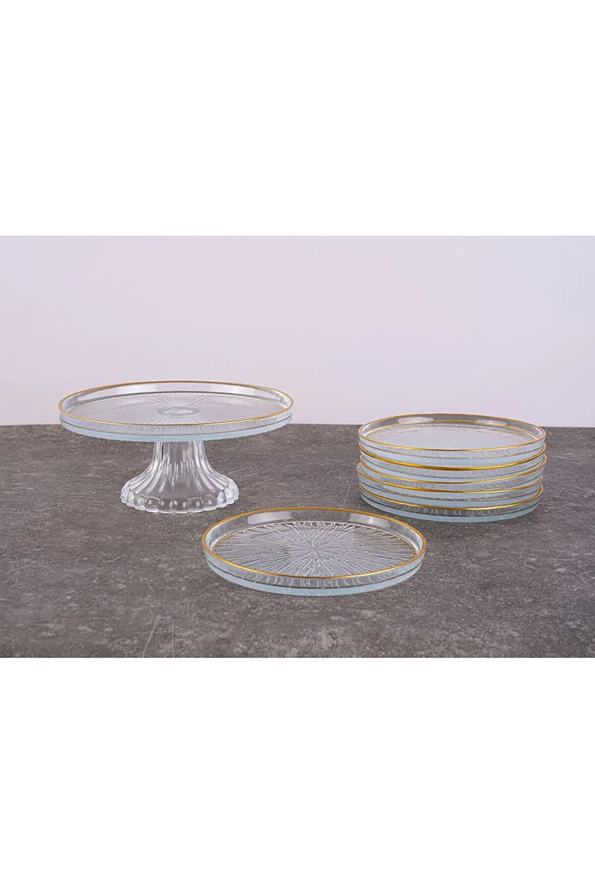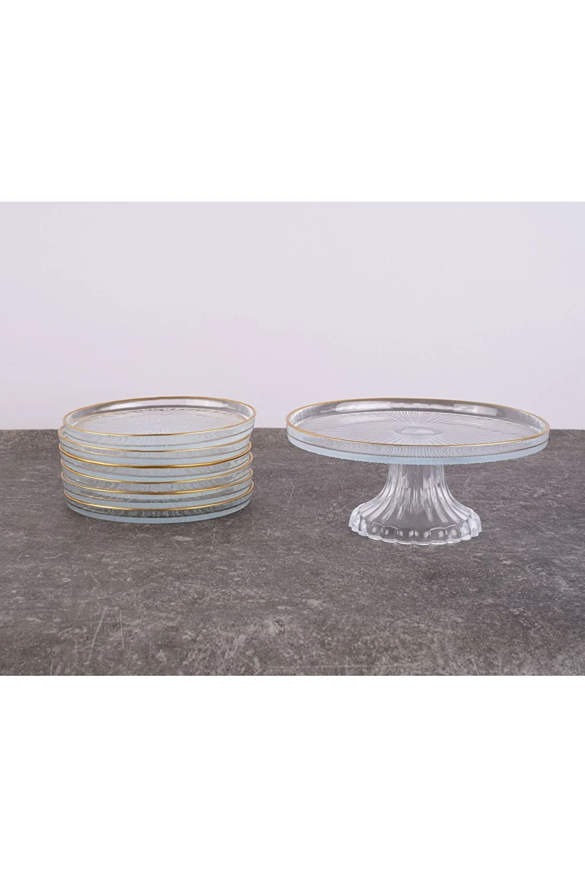 ATALANTICA Cake and Pastry Presentation Set - 1 Footed Plate (21 cm) and 6 Serving Plates (16 cm)