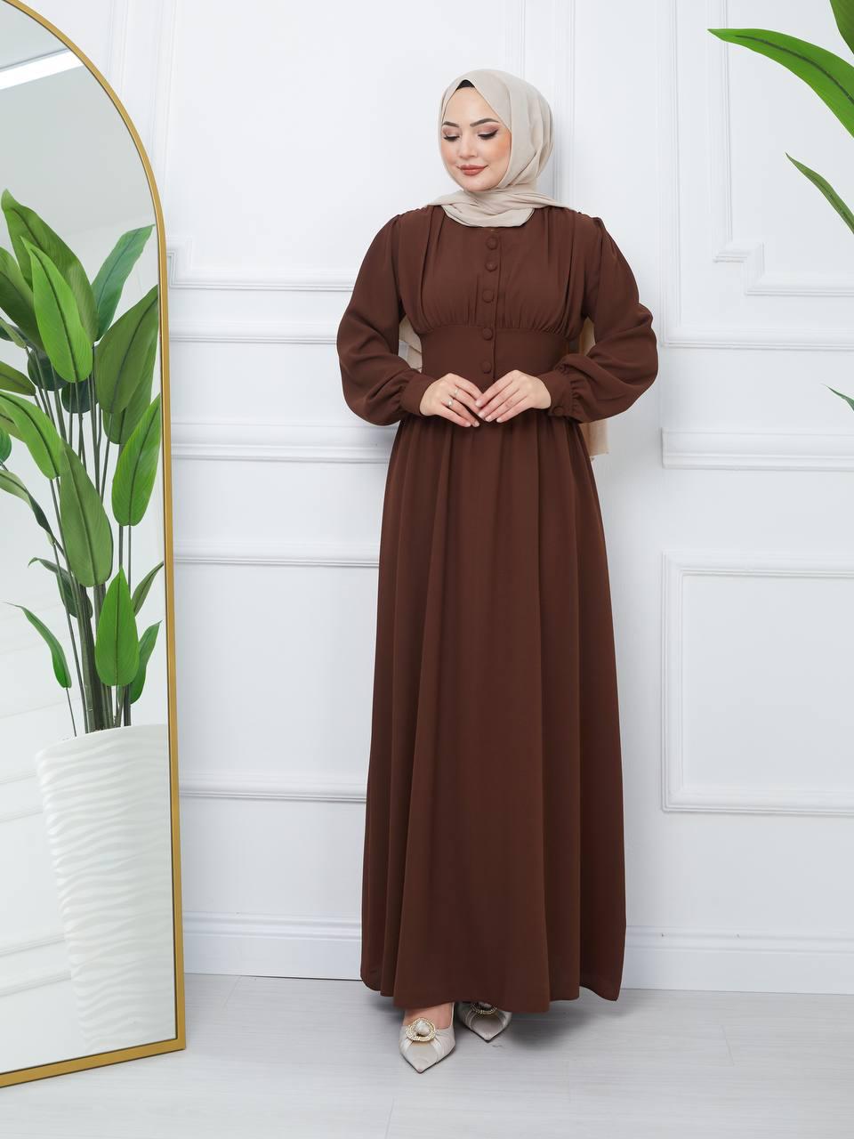 Refka Woman Brown Shawl Patterned Abaya Coat with Tie Collar