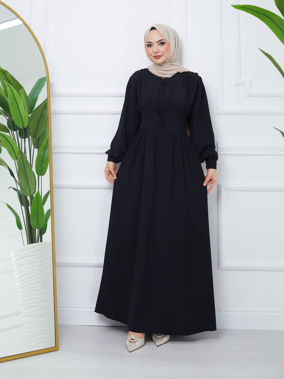 VAVİNOR Liva Sleeves Embellished Abaya - Elegant Black Crepe Abaya with Stone and Pearl Accents