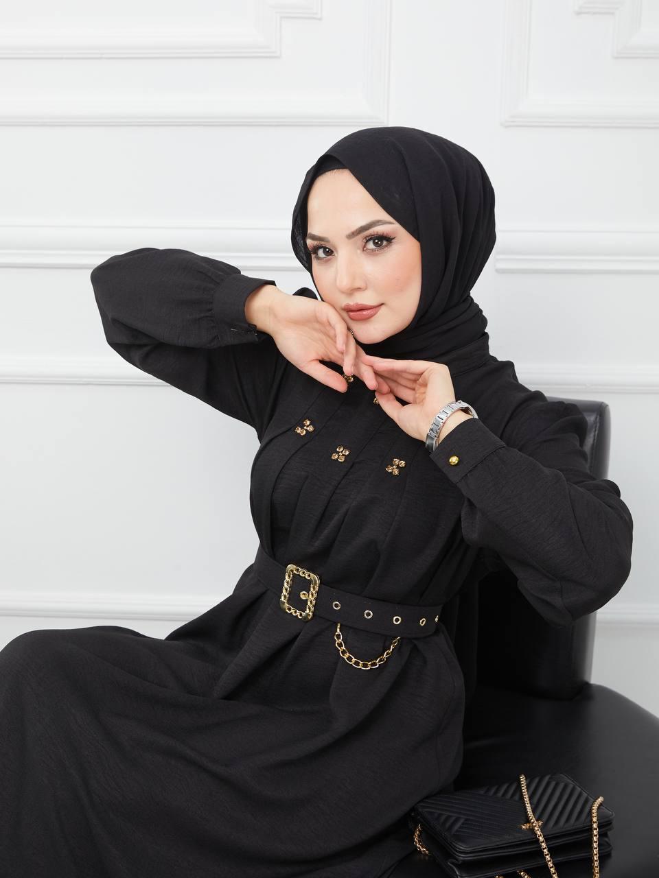 VAVİNOR Liva Sleeves Embellished Abaya - Elegant Black Crepe Abaya with Stone and Pearl Accents