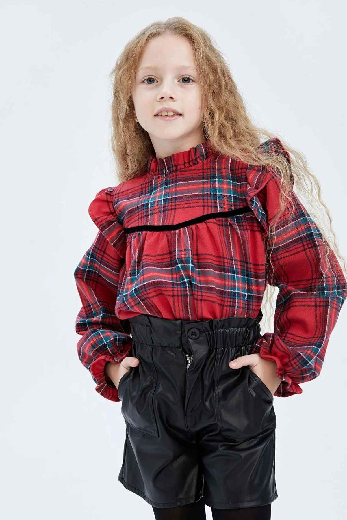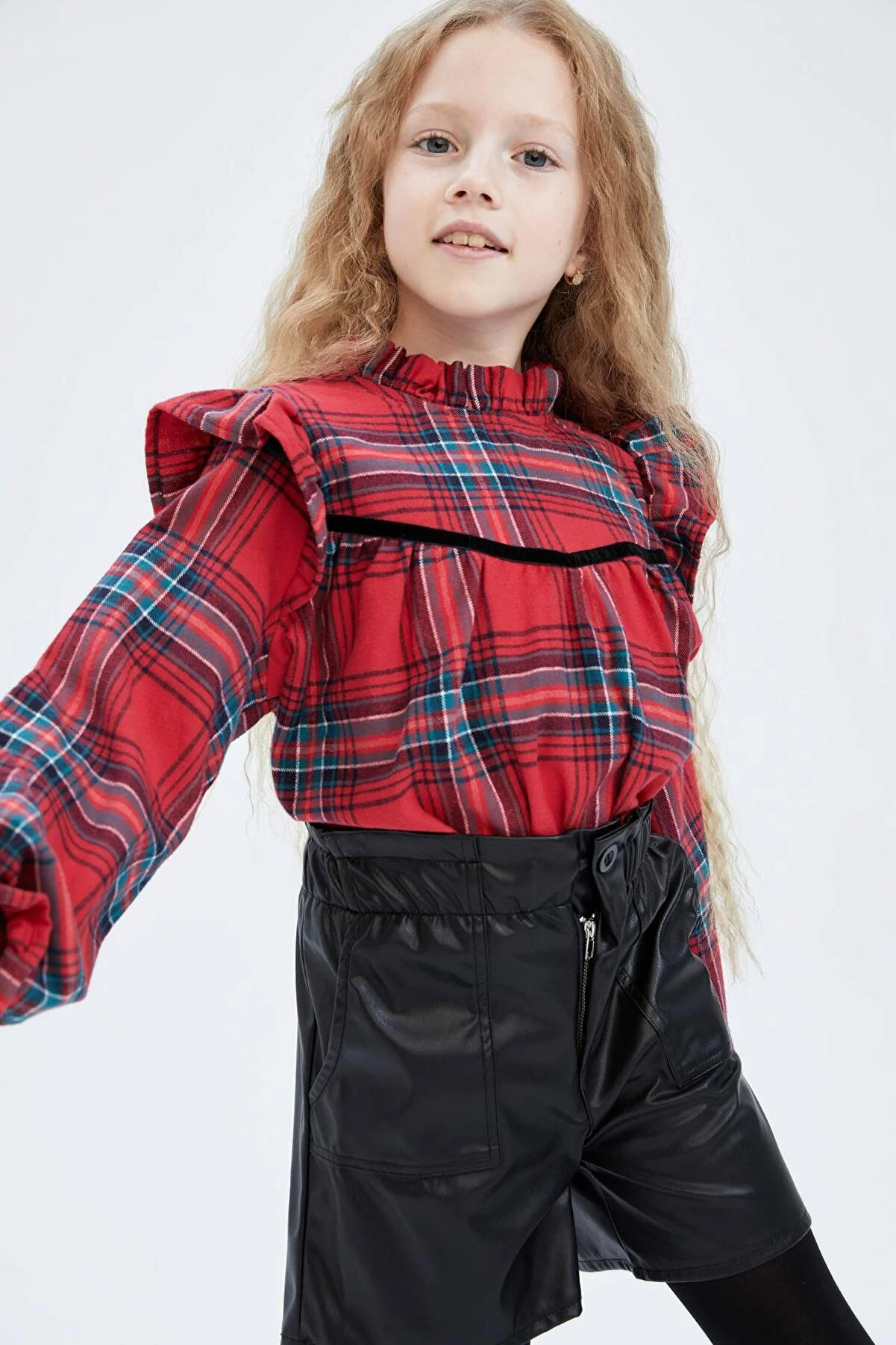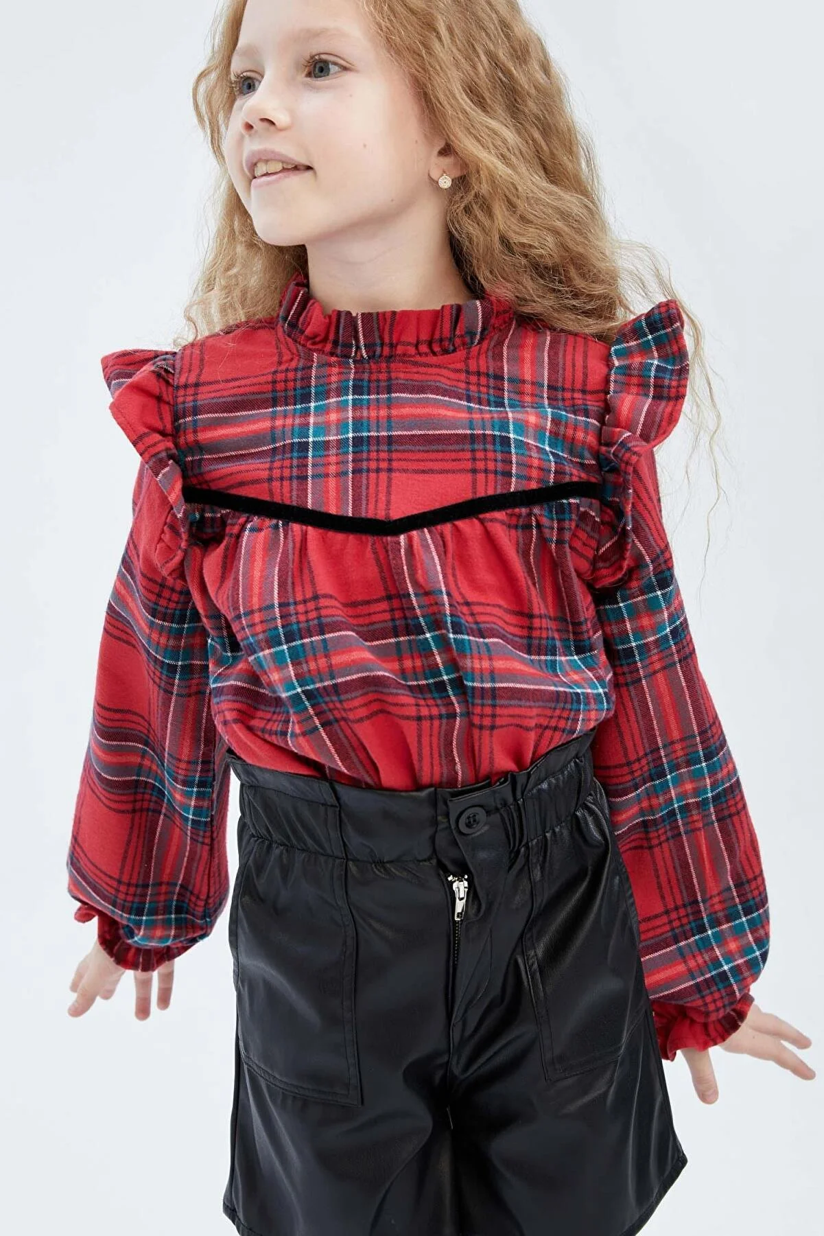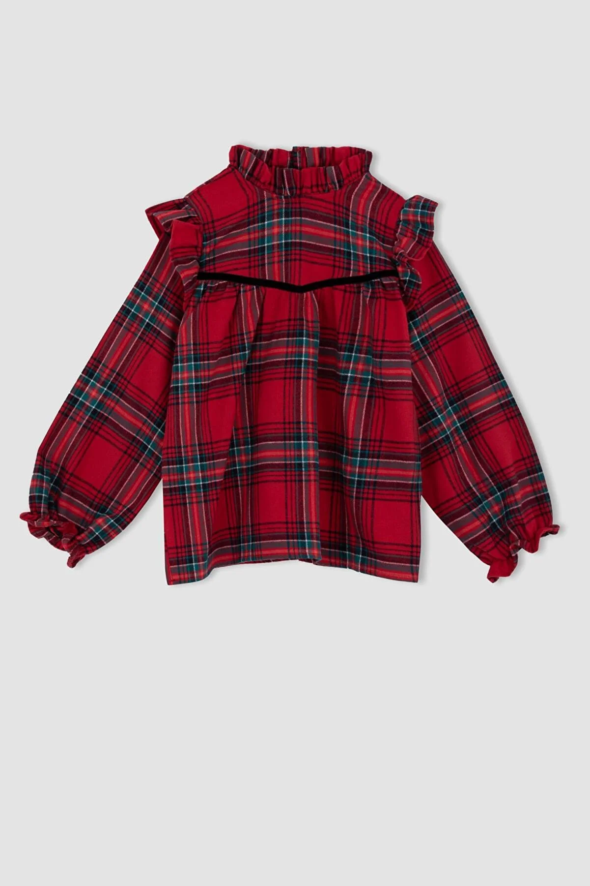 Features: Checkered Pattern, Cotton Fabric, Regular Fit, Ruffled Sleeve, Shirt Collar, Woven, Multicolored, Regular Length, Long Sleeve, Casual/Daily, Basic, Single Pack, Material Composition: 100% Cotton