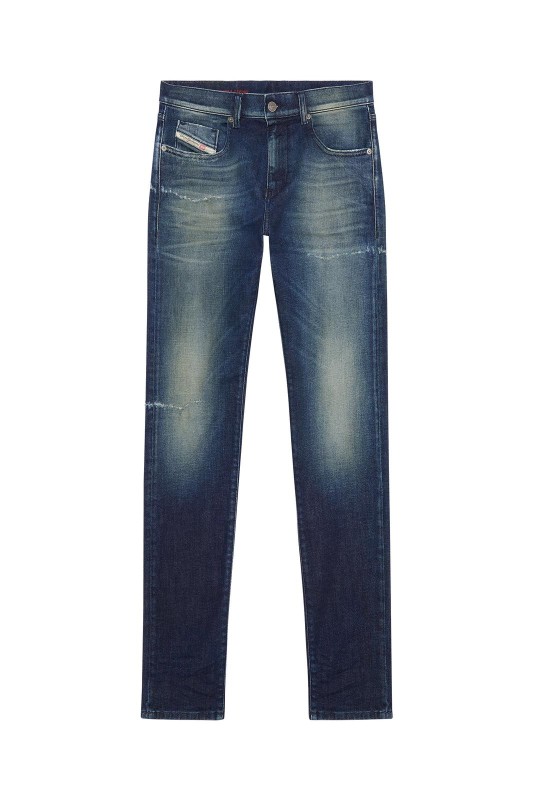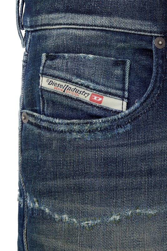 مصنوع من الدنيم المطاطي ، هذا الغسل الأزرق المتوسط يبرز موقفًا جريئًا من خلال شعيرات مميزة وتظليل