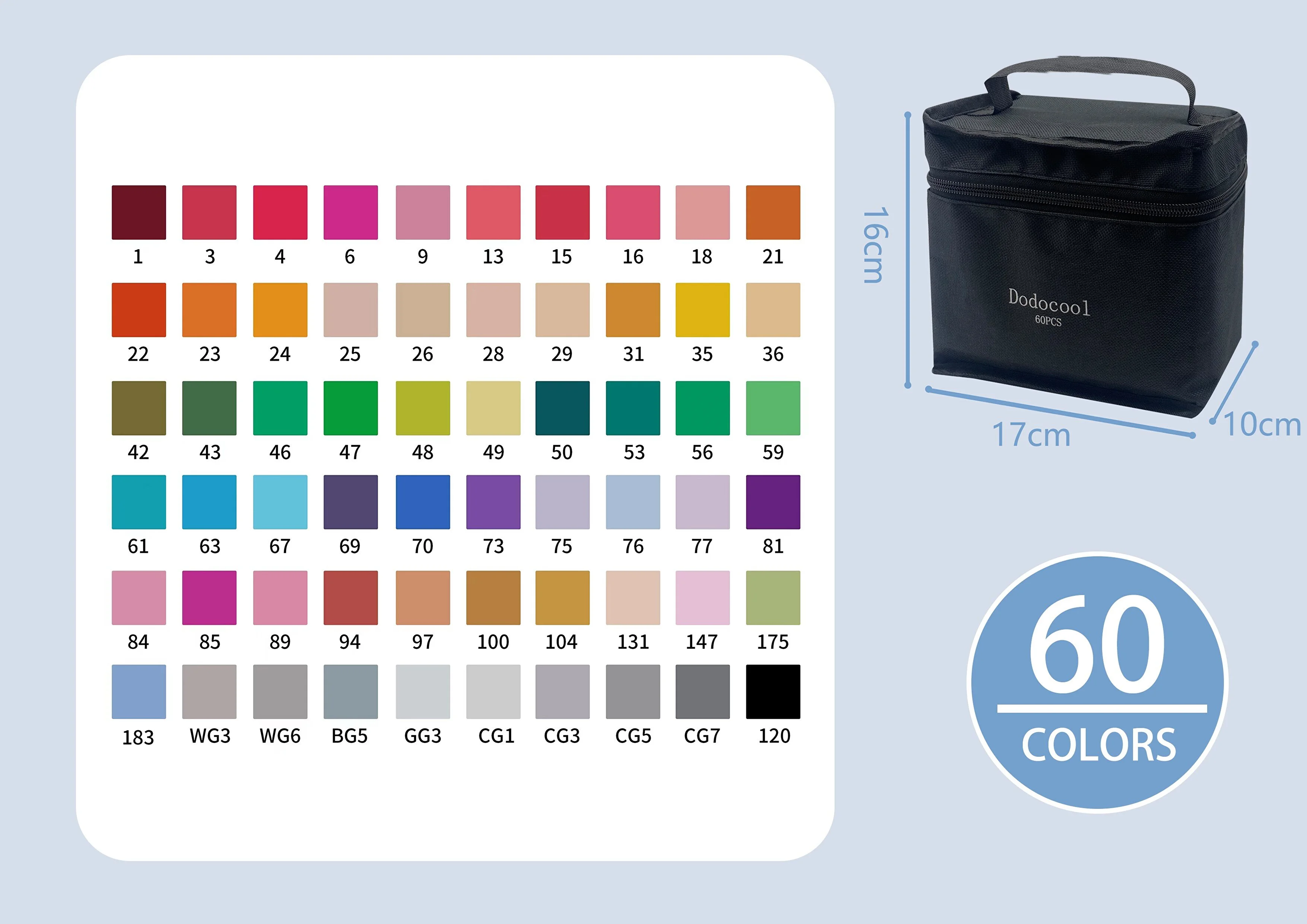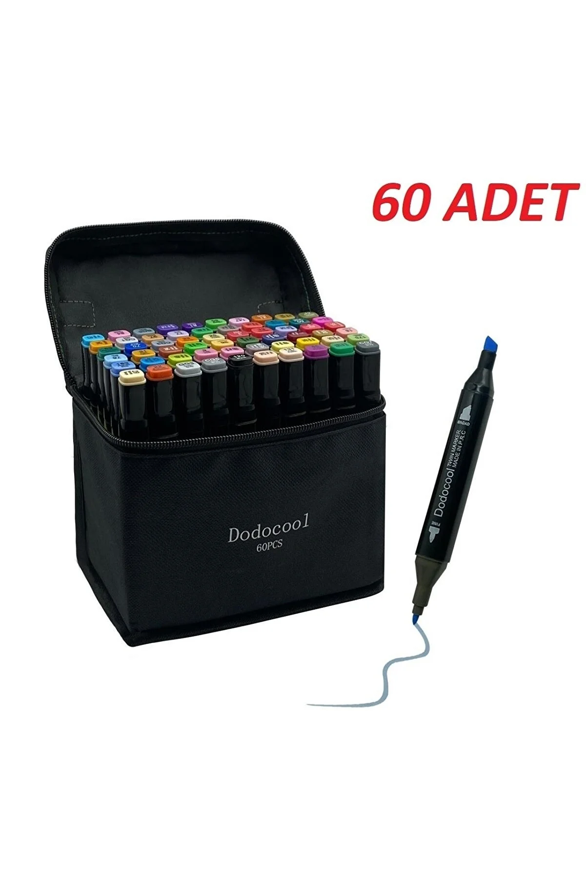 "Dodocool Touch Marker Art Dual-Tip 60-Piece Pen Set with Case - Premium Coloring Markers Marker-ÇİFTKAFA"
