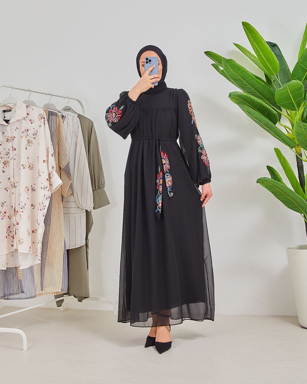 Long embroidered chiffon dress 24y8889