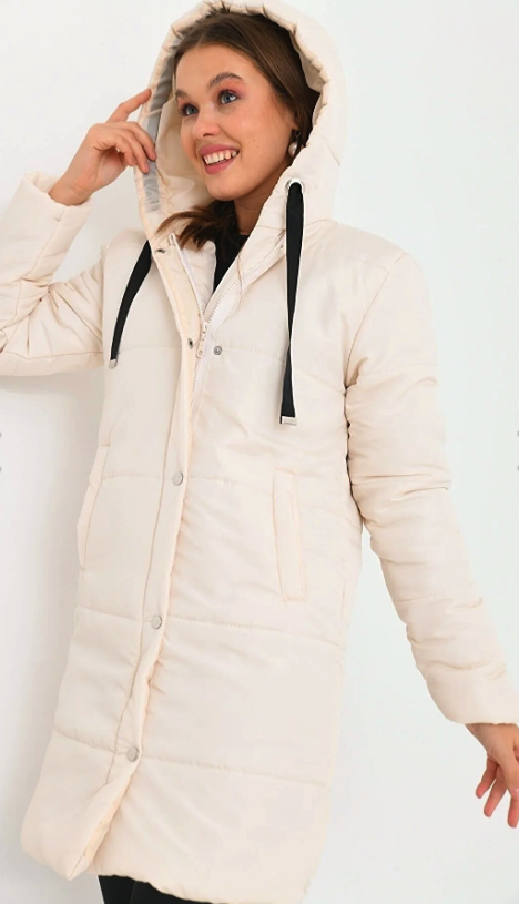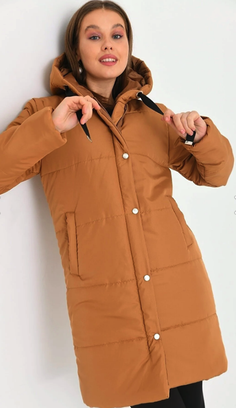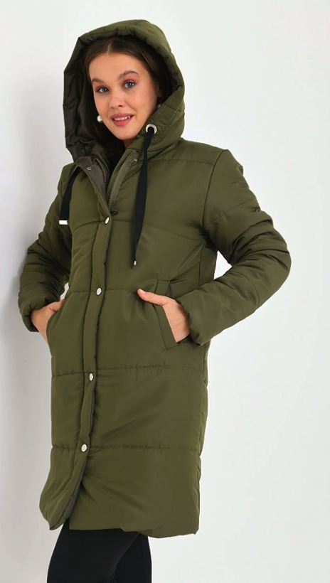 Women's Hooded Zippered Snap-Up Quilted Coat Sample Size: S/36 Product Length: 90 cm Product Width: 50 cm Sleeve Length: 55 cm