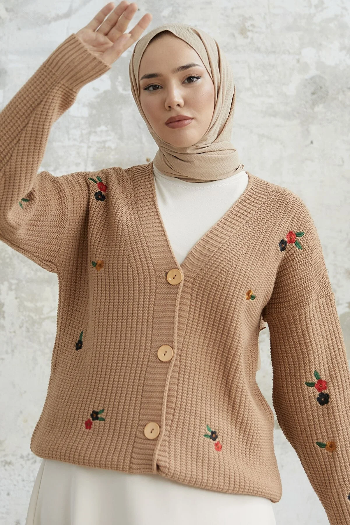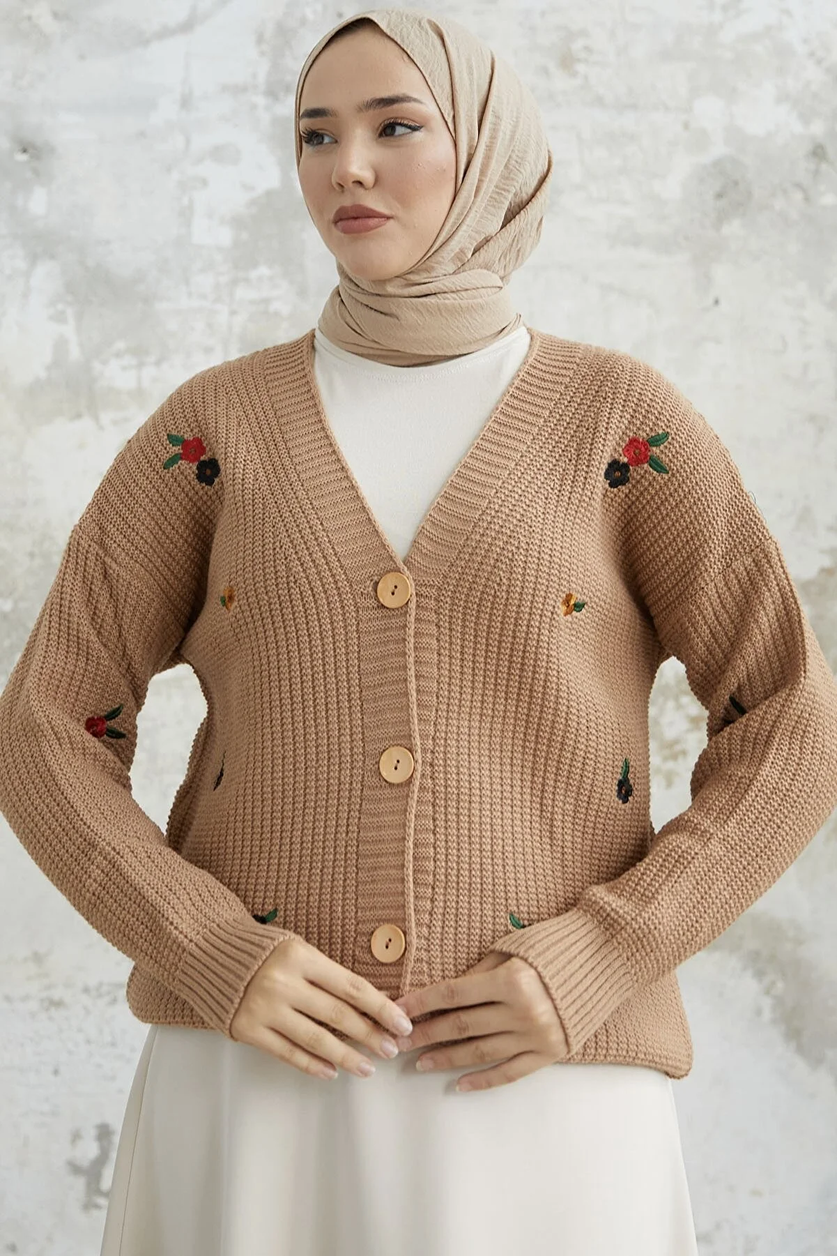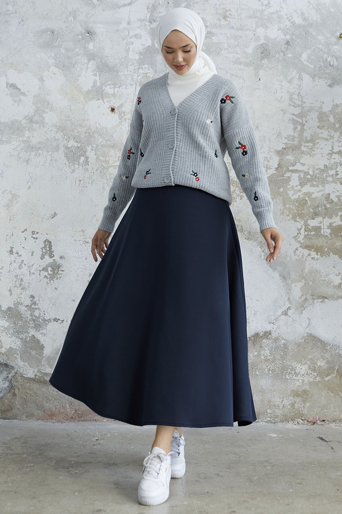 Elevate your style with the Helly Daisy Embroidered Knit Cardigan. This knit cardigan features a charming daisy embroidery and comes with buttons. The knit material is easy to care for, and it's perfect for sizes 38 to 44, with a length of 71 cm. The model in the picture is 175 cm tall with measurements of 68 cm at the waist, 104 cm at the hips, and 90 cm at the chest. Enjoy a cozy and stylish addition to your wardrobe with this unique cardigan.