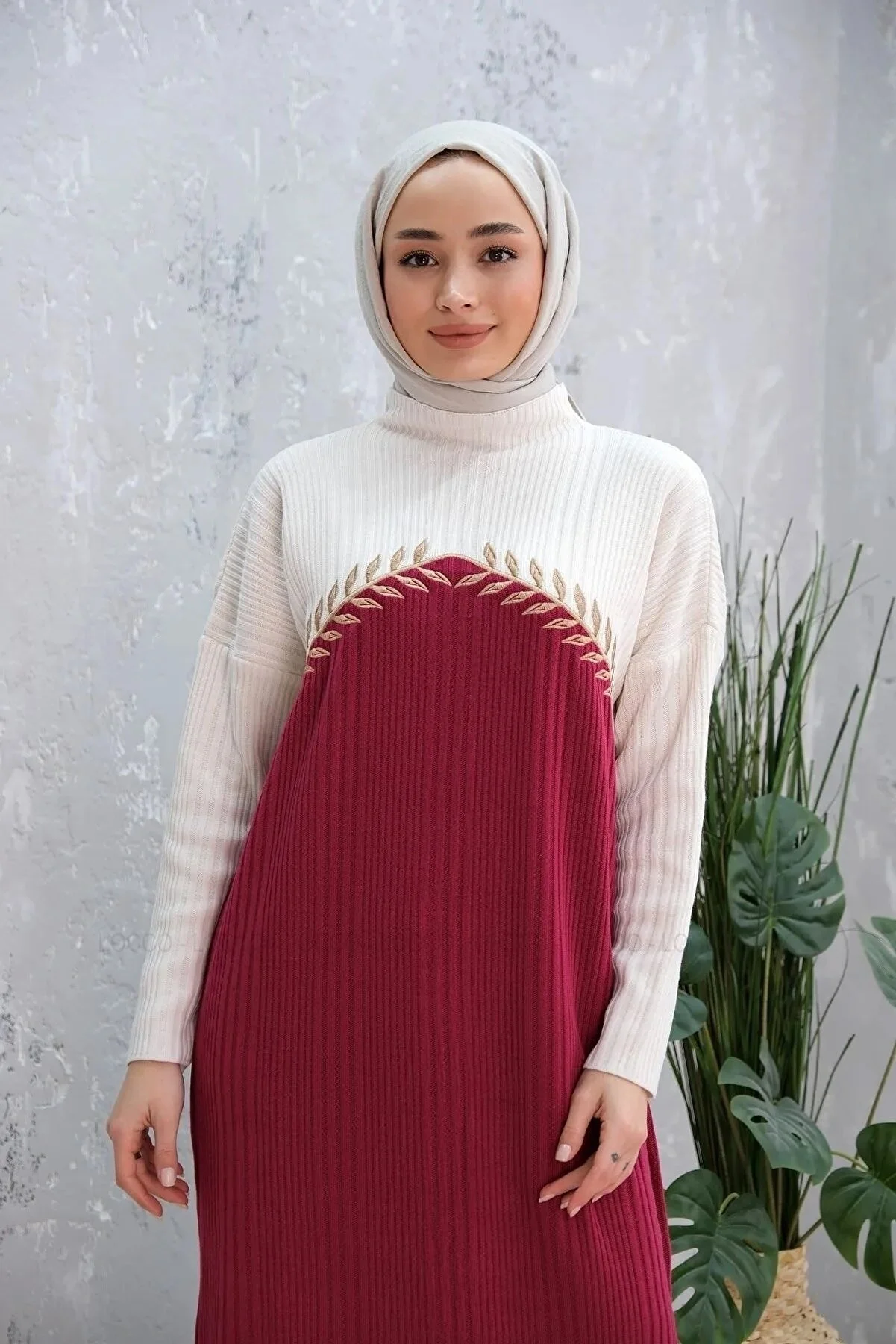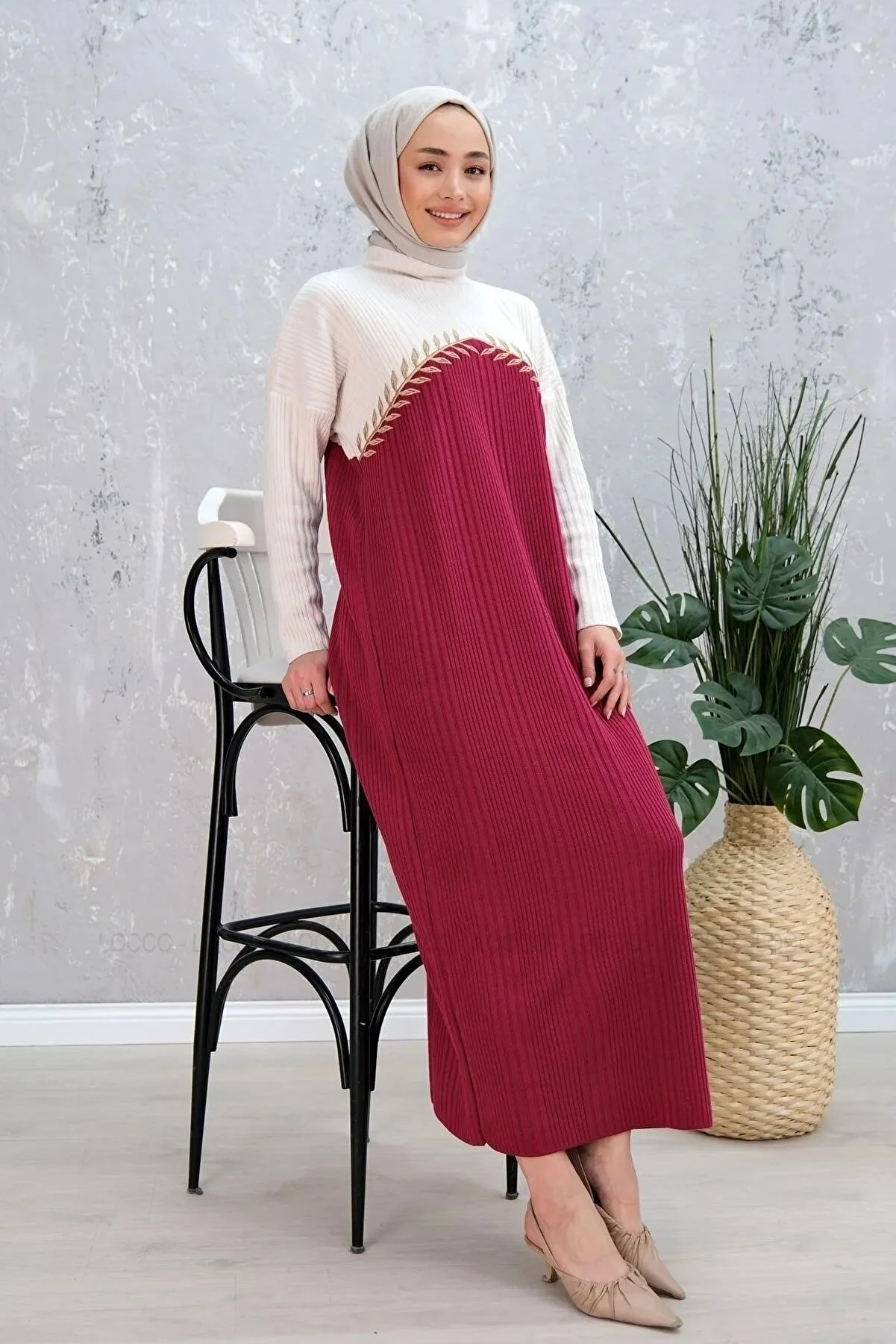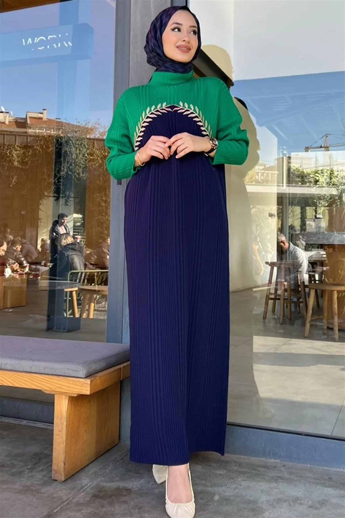 Elevate your winter hijab fashion with this elegant maxi dress in a refreshing green hue. Crafted from a comfortable knit fabric with an alluring texture, this dress features Eva embroidery and a half turtleneck collar. Product dimensions: Length 130-135 cm, Bust 120 cm, Waist 105 cm, Hips 110 cm. This acrylic woven dress is designed in a standard fit, suitable for sizes 36 to 44. It's ideal for hand washing in a 30°C program. Please note that colors may slightly vary due to lighting differences. Enjoy a trendy and eco-friendly style for your daily wear.