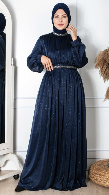 Product Code: FHM858 Fabric Feature: Glittery tulle fabric Seasons: 4 Seasons Collar: Round neck Pattern: Normal Pattern Lining: Lined Product Length: 155 cm (length from shoulder to hem) Product Feature: Brit sleeve detail. It is zippered. There is a stone-worked belt detail. Thanks to its flexible structure, it has a wrinkle-resistant and breathable feature. It is suitable for frequent and long-term use with its non-weight fabric feature. It is lined. Returns: Returns and exchanges are available within 14 days. (This period is 24 hours for evening dresses and suits) Delivery: It is given to the cargo within 24 hours. Model Dimensions Height: 170 cm Bust: 88 cm Waist: 76 cm Hips: 96 cm