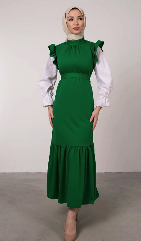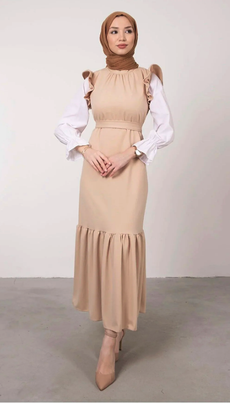 Product length 132 cm straight cut sand crepe fabric waist belted zipper closure without lining, no see-through mannequin dimensions: Wearing size 36/s mannequin length 168 cm measurements 85/61/82