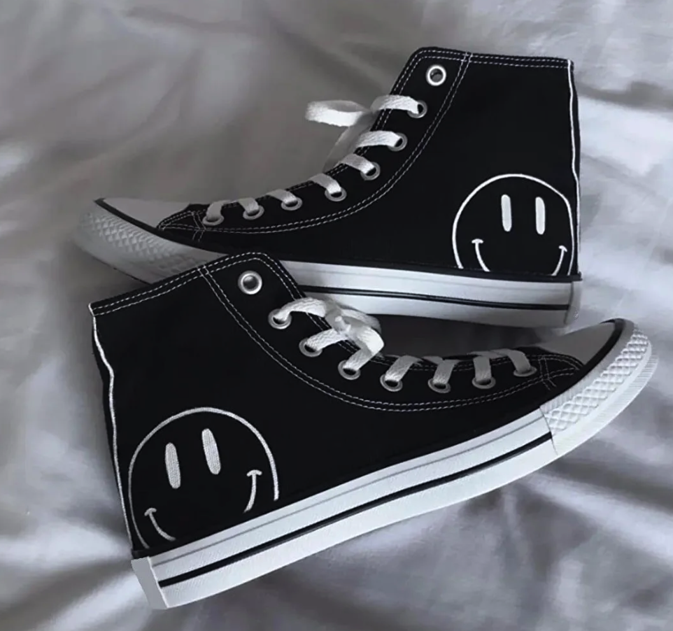 Halloween Unisex Casual Linen Comfortable Ankle Black Long Smile Printed Sneakers