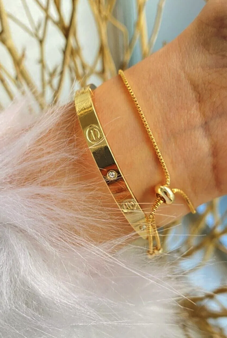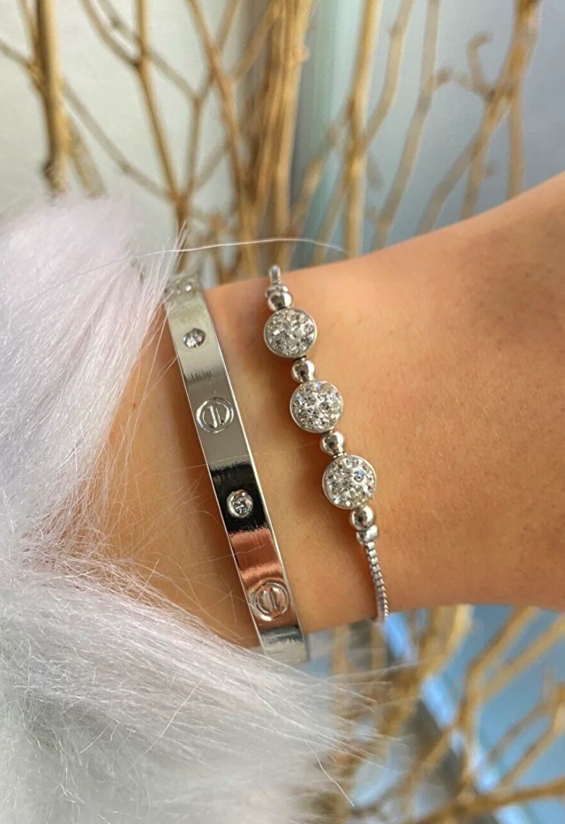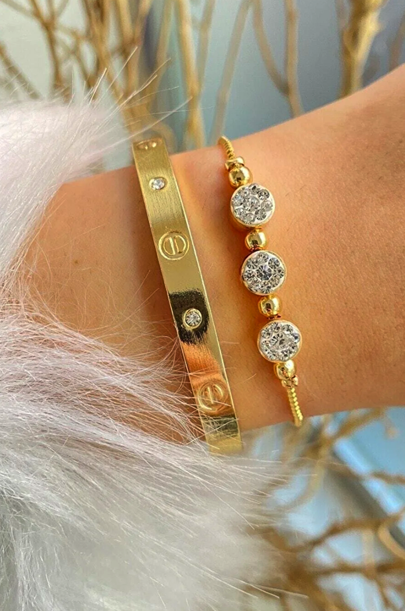 jackferrero Women's Rose Cartier Cuff Triple Stone Elevator Rosse Color 2 Pcs Combination Bracelet Set