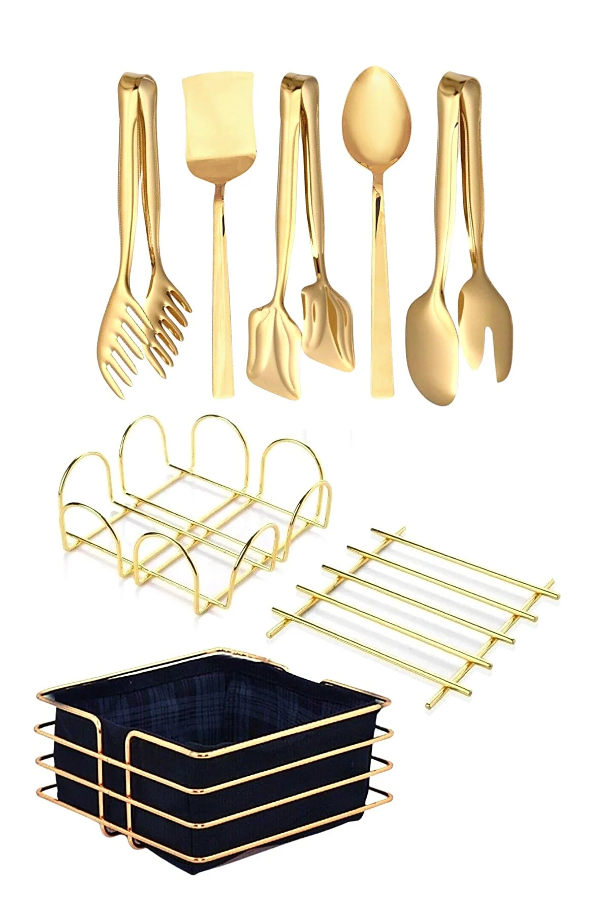 Luxury Gold Bride Set: Elegant Set of 8 Gold Serving Utensils - Stainless Steel, Mirror Finished, Dishwasher Safe