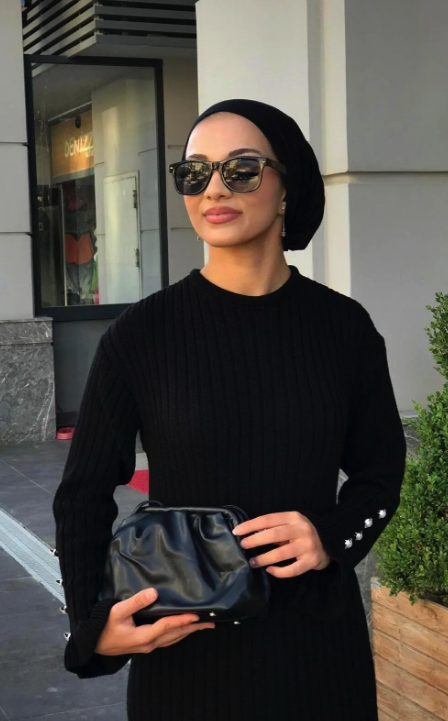 mervenakyuz Alice Buttoned Sleeve Knitwear Dress Black