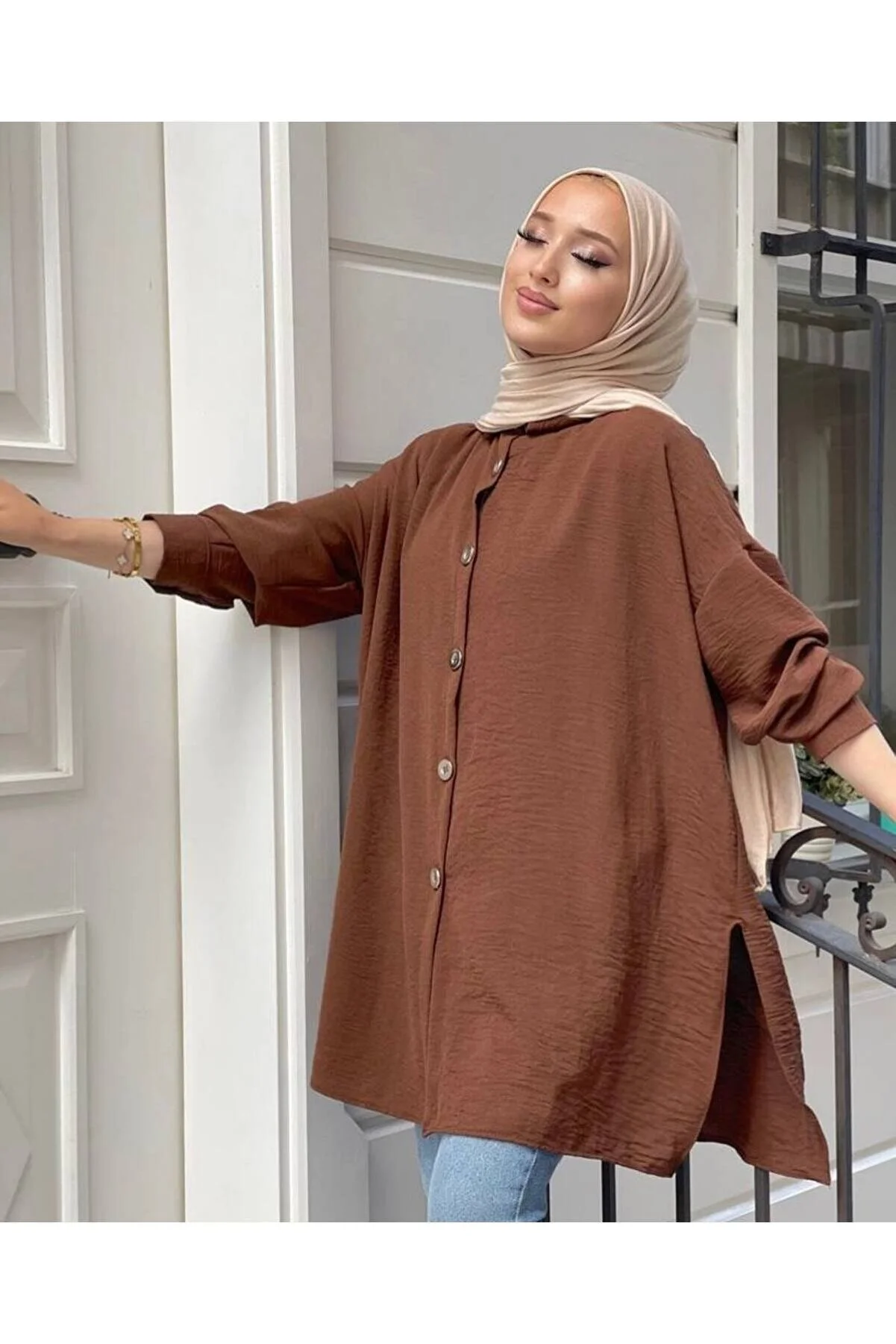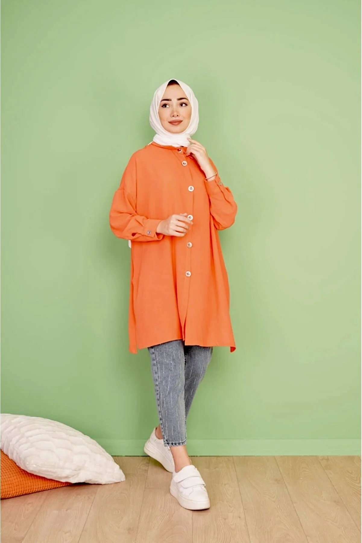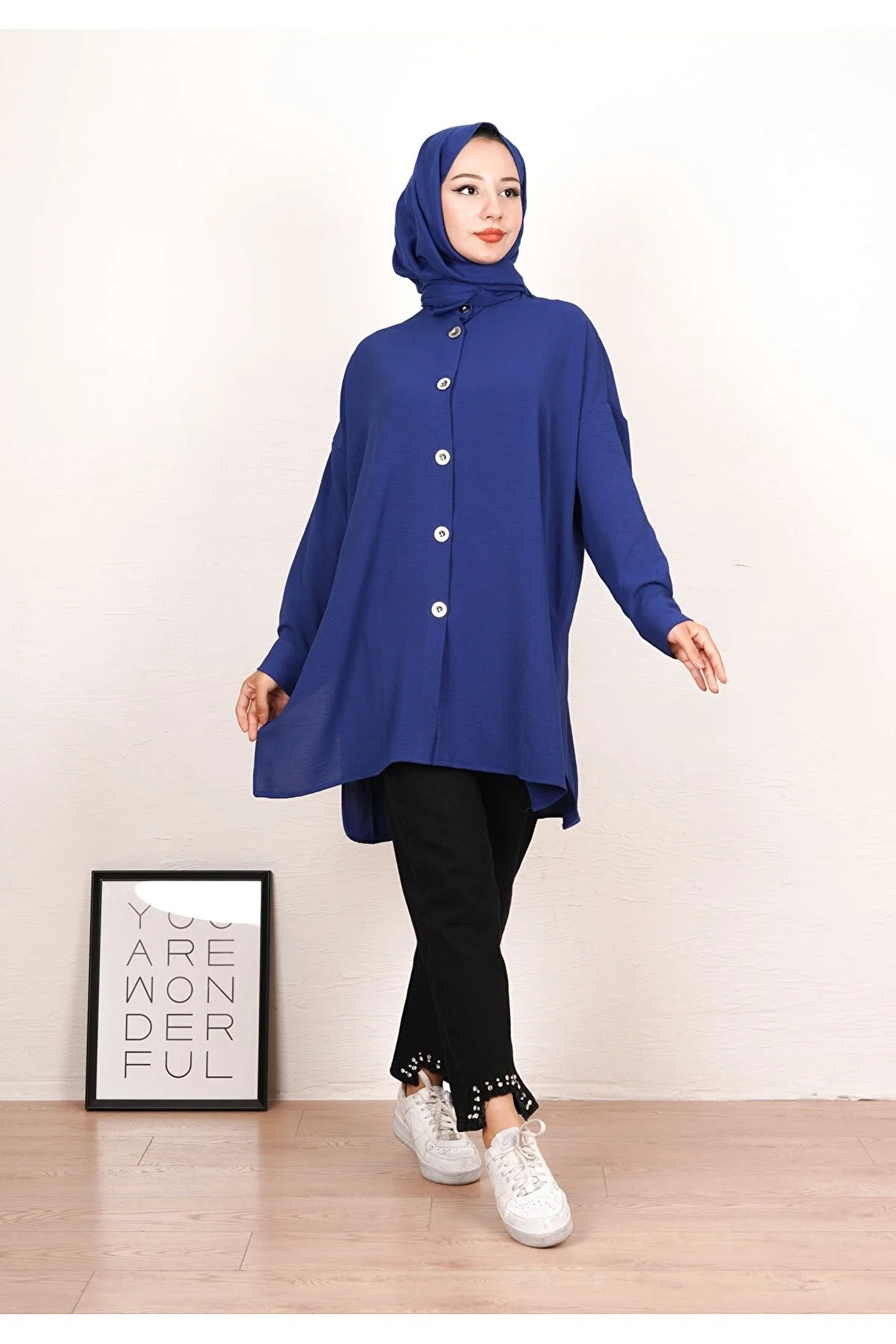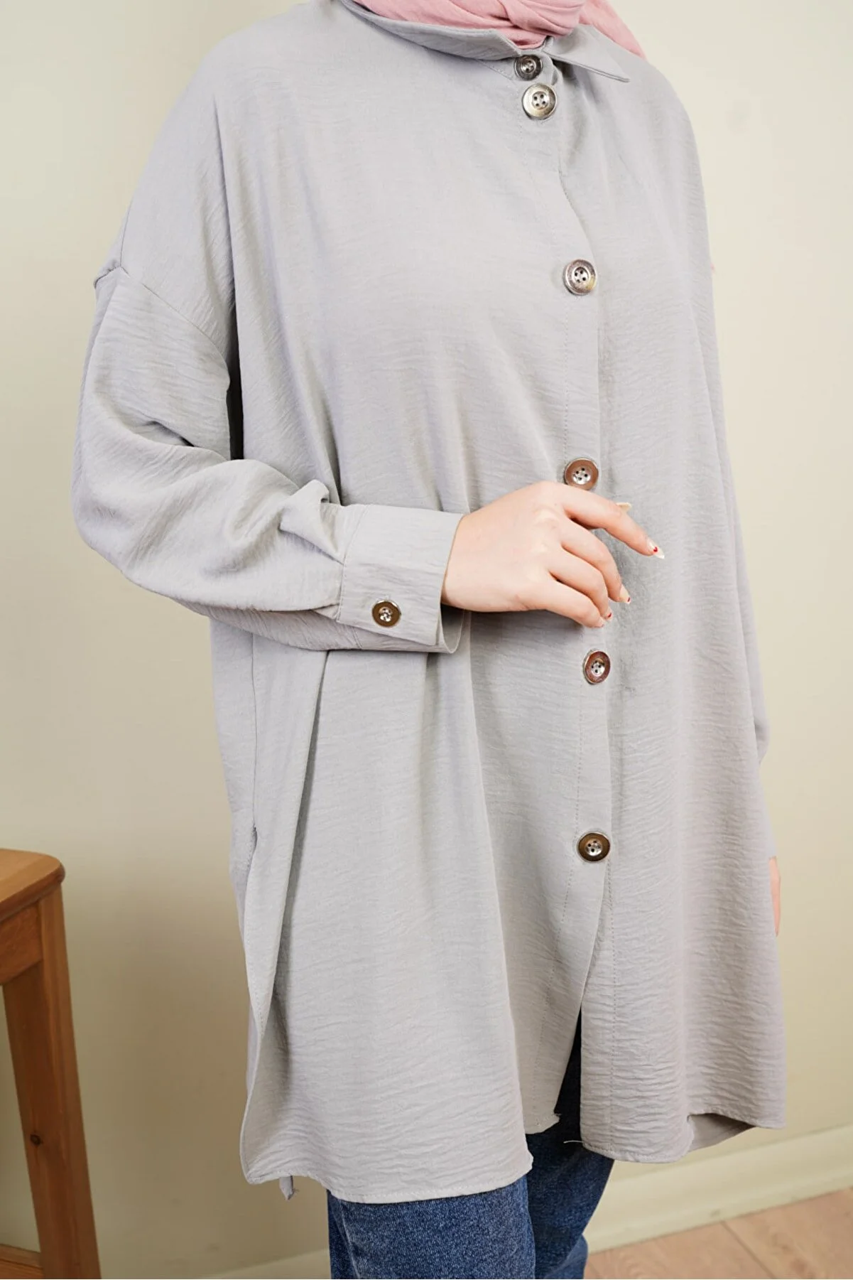 The scarcity of aerobin fabric does not require ironing. It has a wide, comfortable, and loose cut. It is comfortable up to size 36-44 and is suitable for sizes 170 and over 46. product height 85 cm. Model height: 164 cm, weight 53 kg. The size above is standard size.