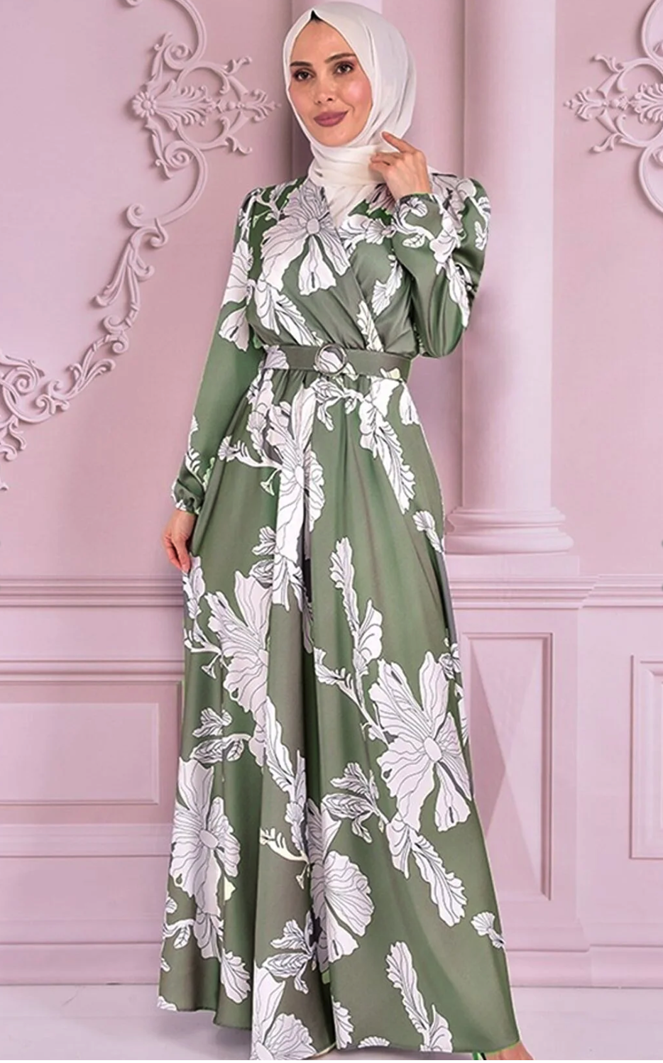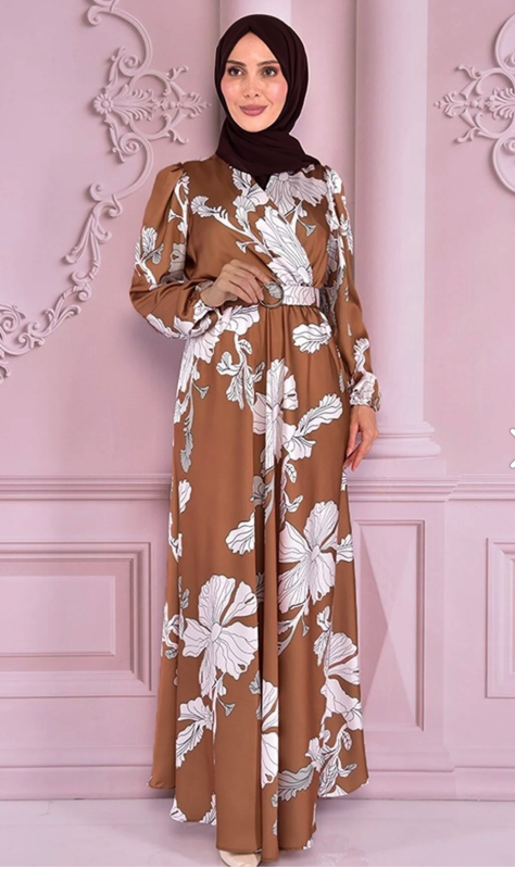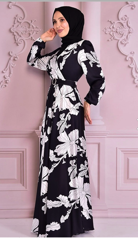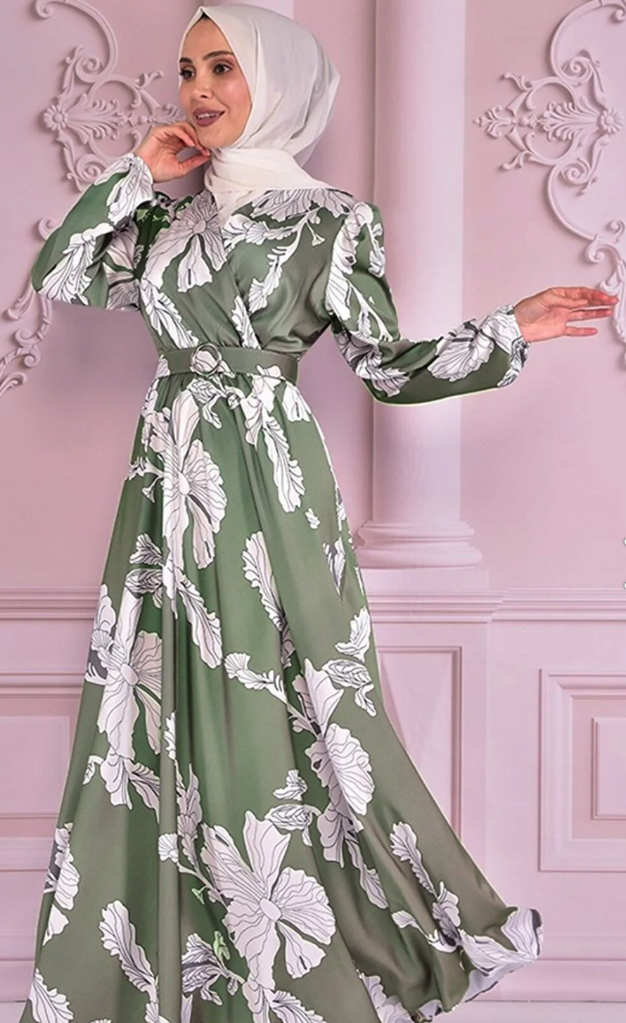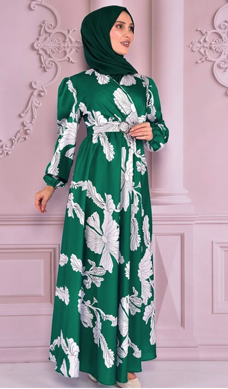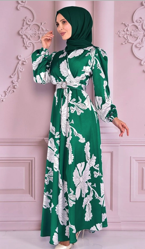 Fabric Feature: The product is produced from half lycra satin fabric. Product Length: 151 cm. Product Feature: The product is a summer season product. Elastic waist and sleeve cuffs. The belt is portable and is supplied with the product. Model Dimensions Height: 1.68 (Without Shoes) Bust: 87 Waist: 67 Hips: 95 The product on the mannequin is size 40. NOTE : The product pattern is a one-to-one pattern, it is recommended to order your own size. There may be slight tonal differences in product colors due to concept shots. Since the product is an evening dress product, you must send it to us with the cargo you received, within 24 hours at the latest after the product reaches you for exchange.