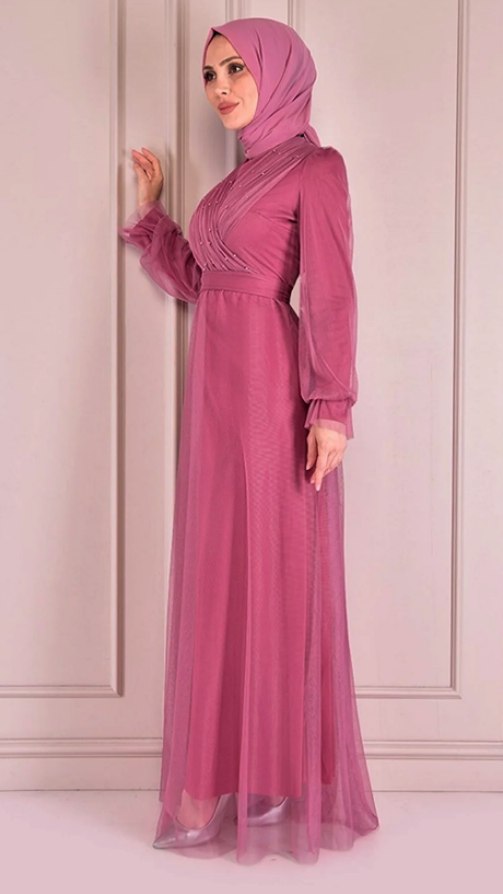 ModaMerve İnci Detail Evening Dress Dried Rose Asm22671