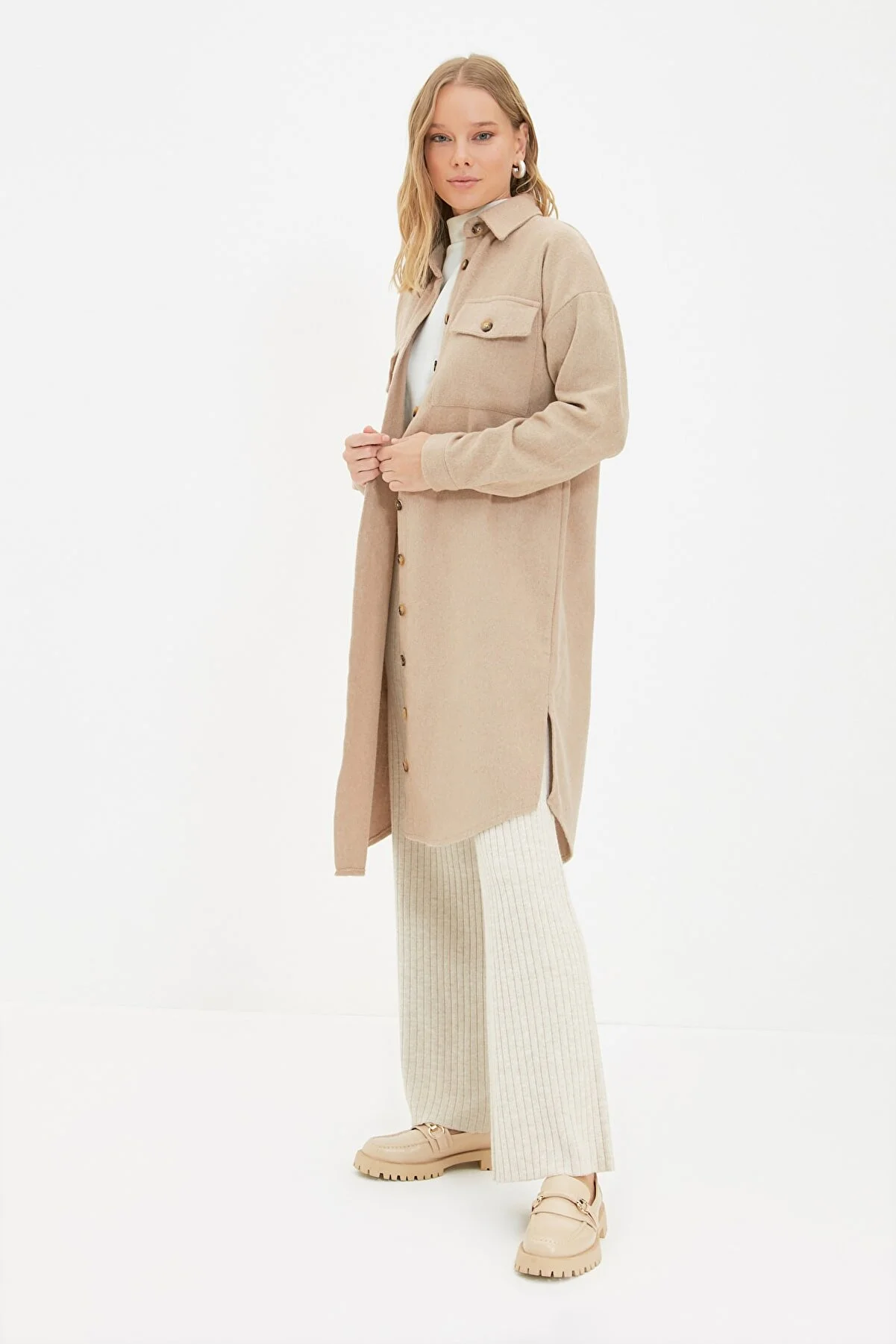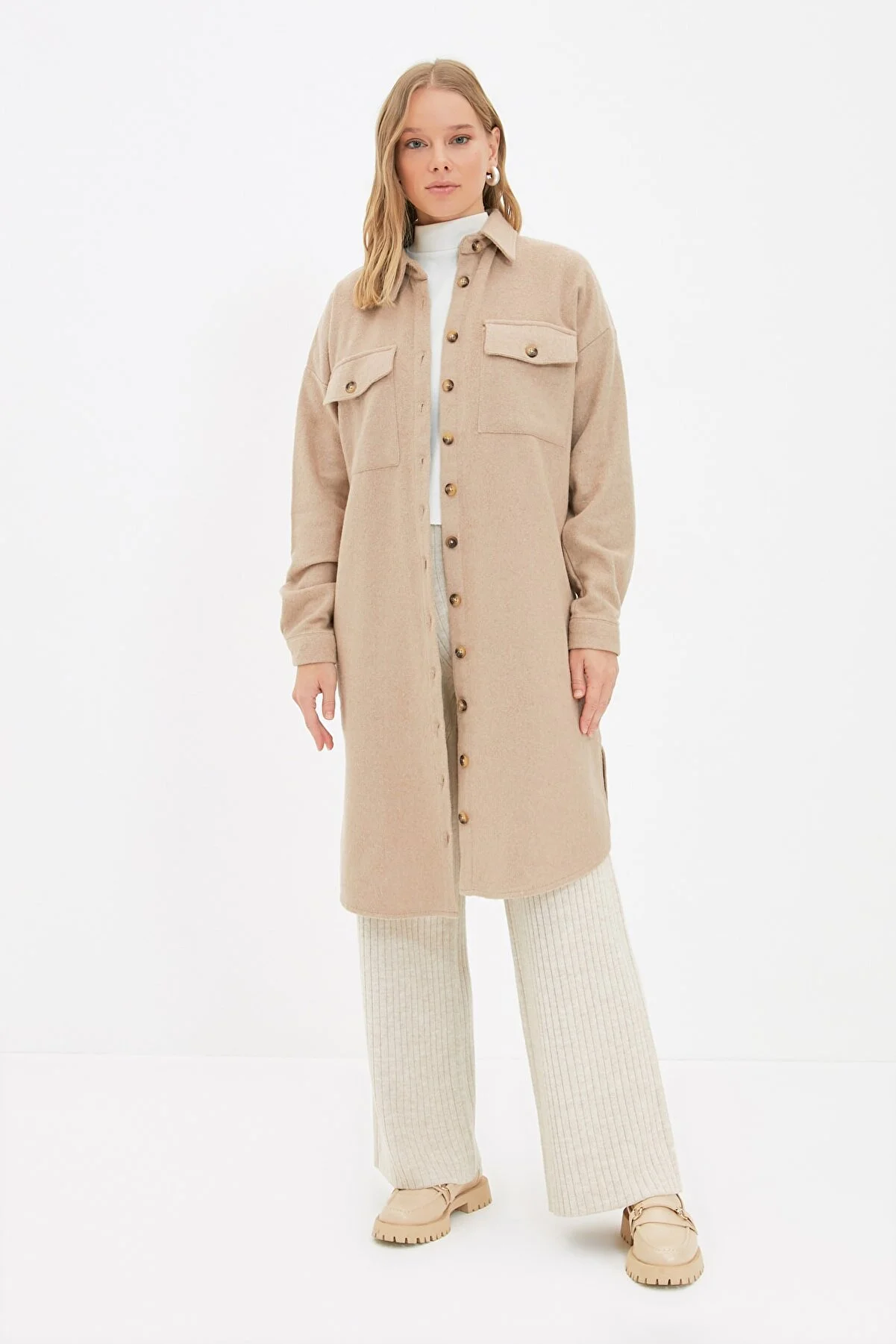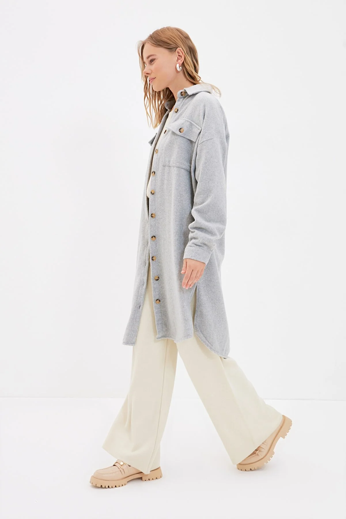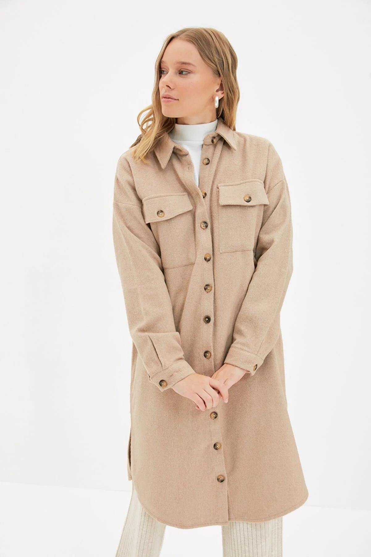 Modest Long Winter Women's Tunic Shirt with Buttons TCTAW22UK0067