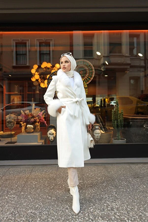 Explore the elegance of the ZEHRA ÇAMRAN New Season Elegant White Coat, available in sizes 36-44.