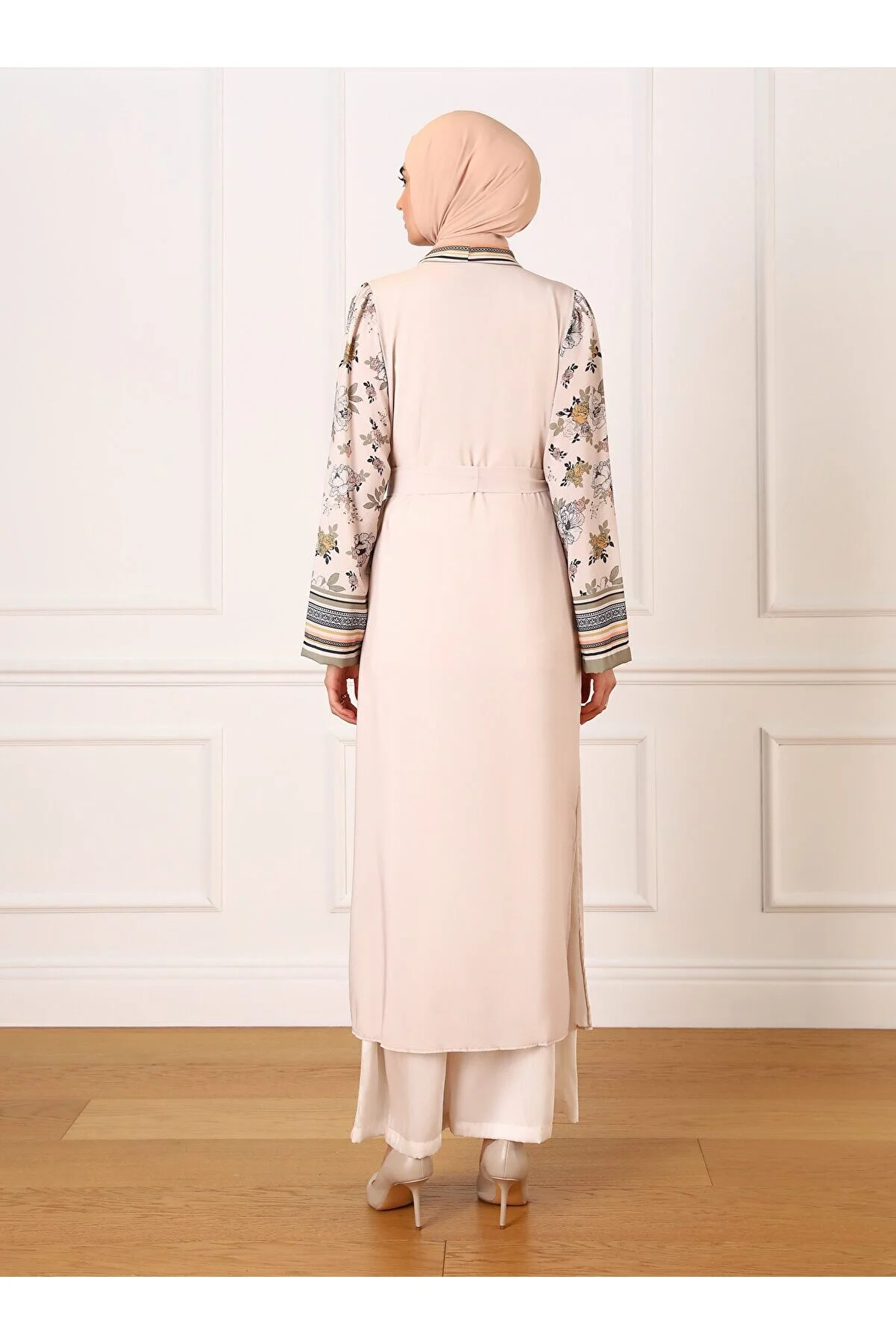 Description: Indulge in the enchanting allure of the Refka Woman Floral Patterned Kimono. This exquisite piece in beige and green boasts a delightful floral pattern, adding a touch of nature's beauty to your wardrobe.