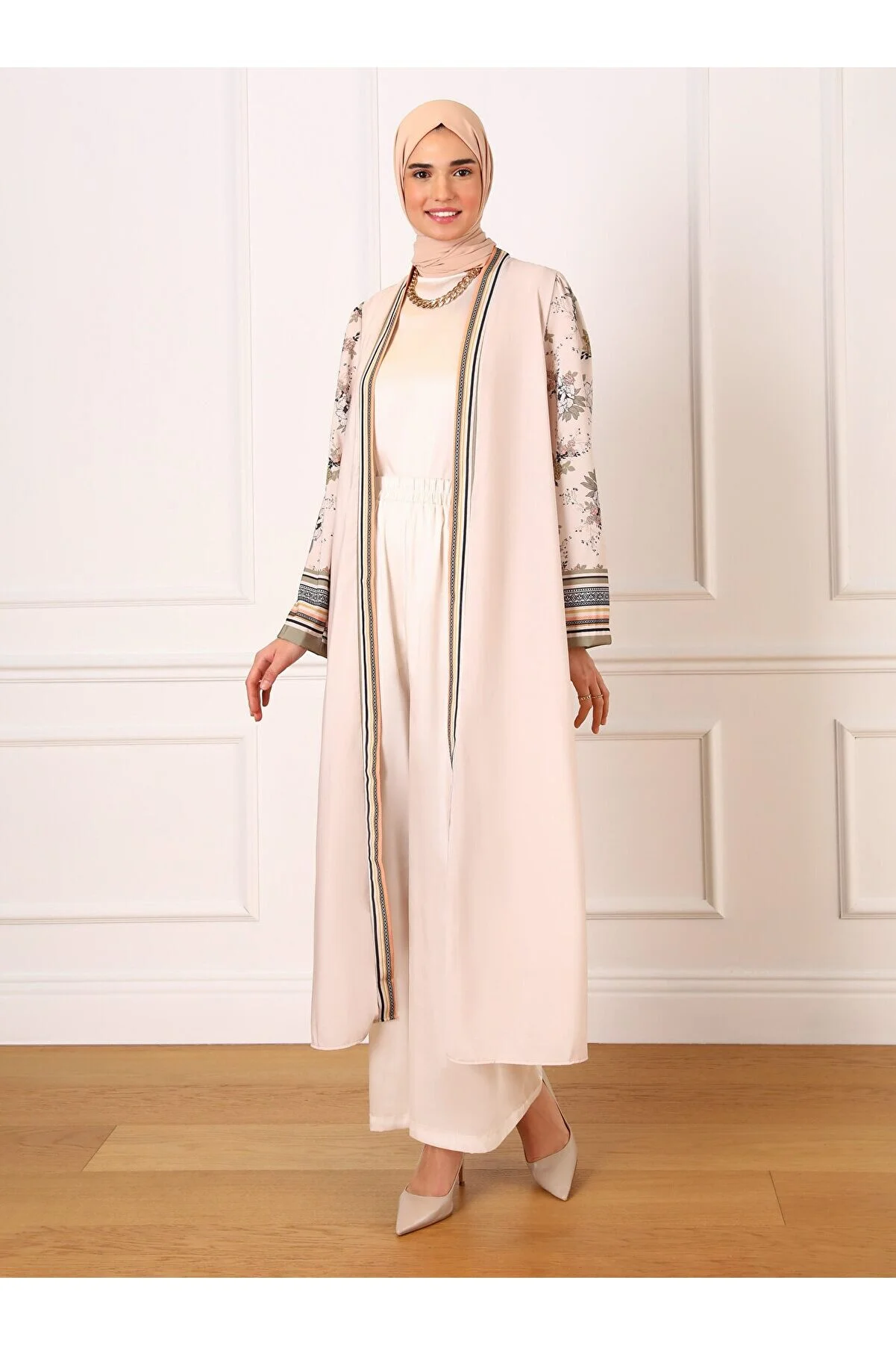 Refka Woman Floral Patterned Kimono - Beige Green
