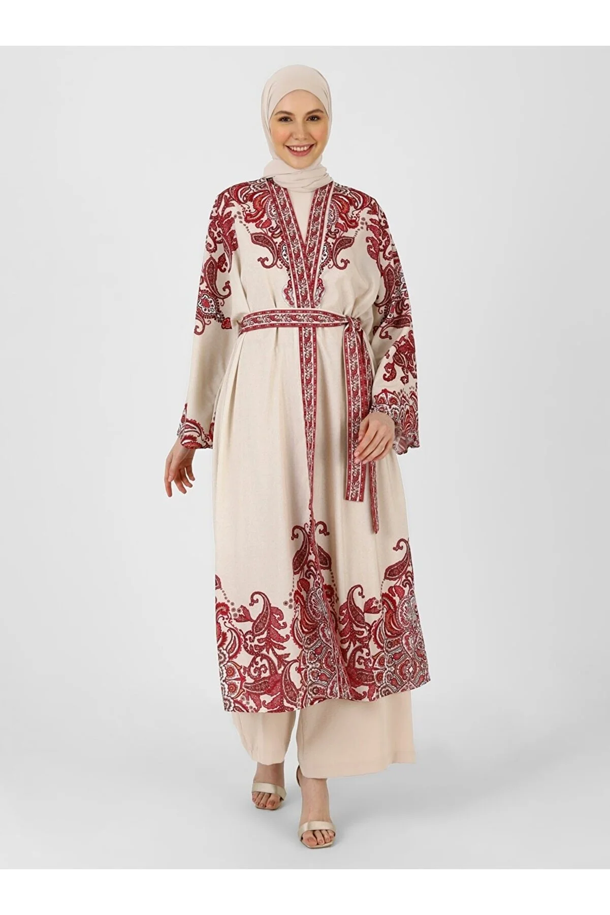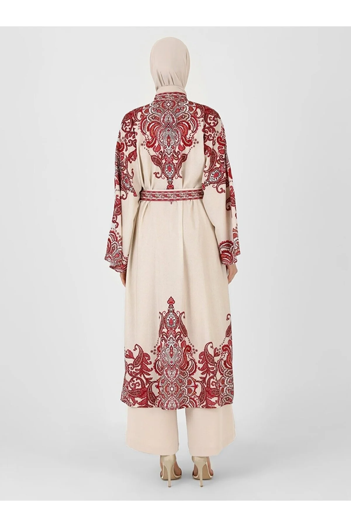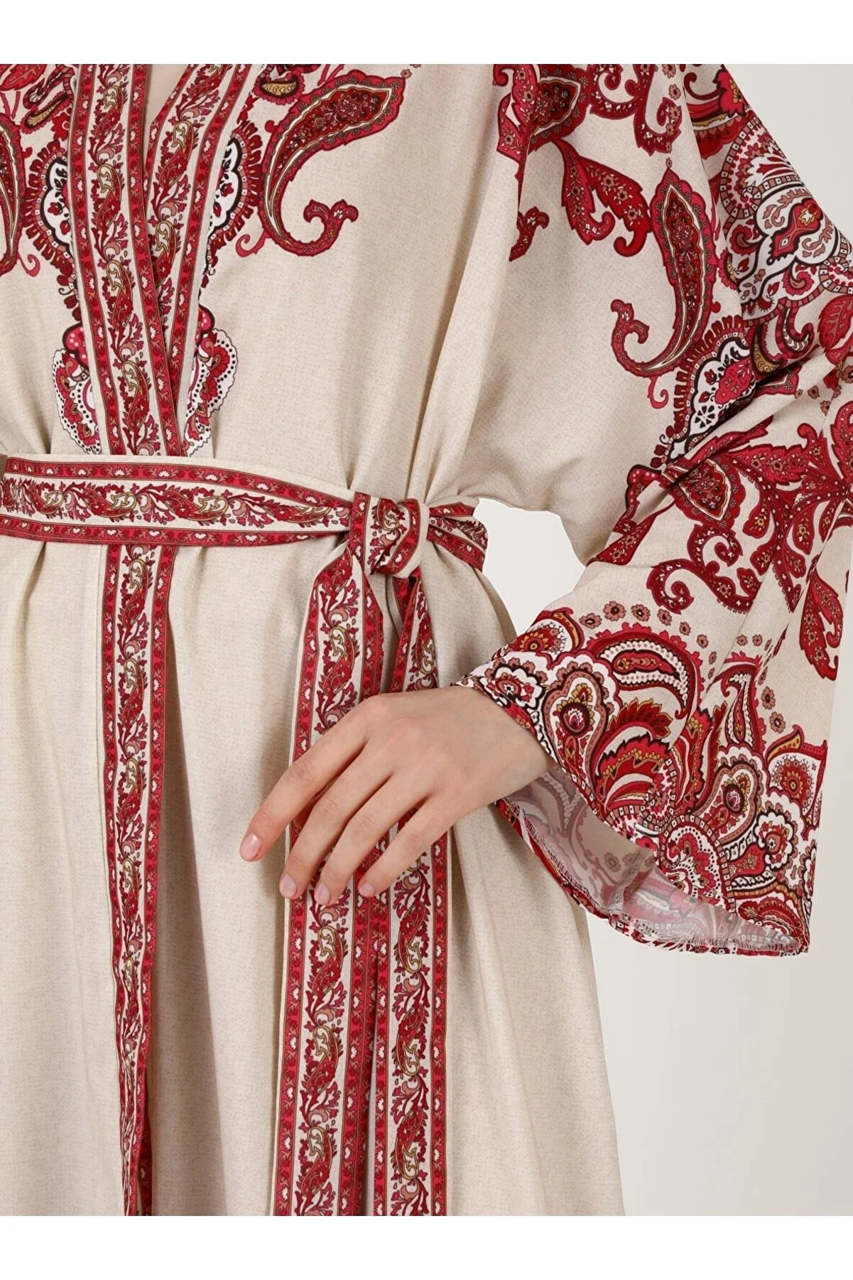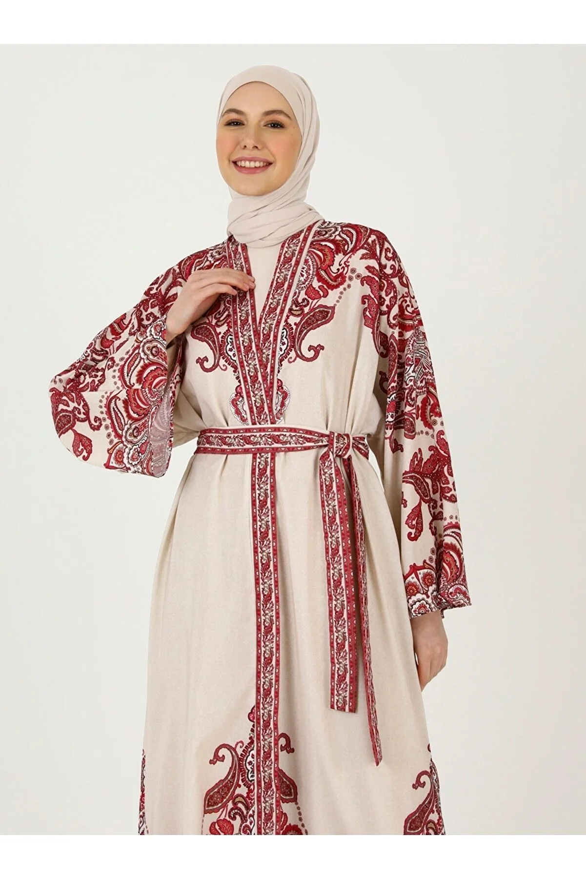 Refka Woman Shawl Patterned Belted Kimono - Cherry
