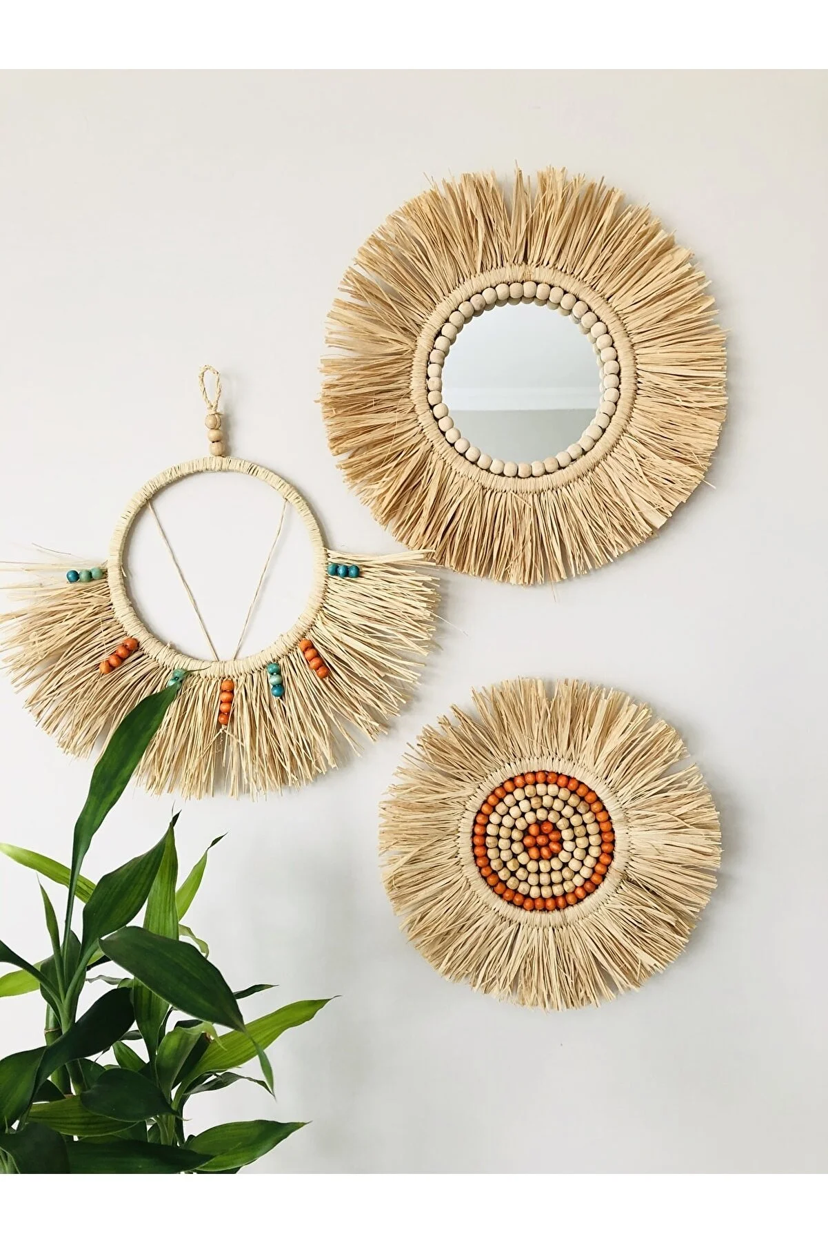 Set of Three Handmade Bohemian Wall Hanging Decorative Mirrors (35-40 cm)