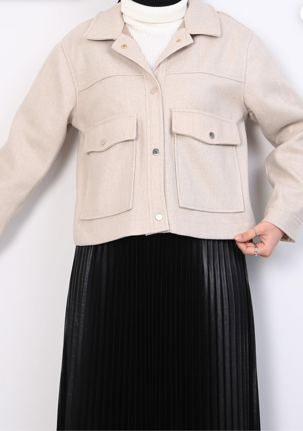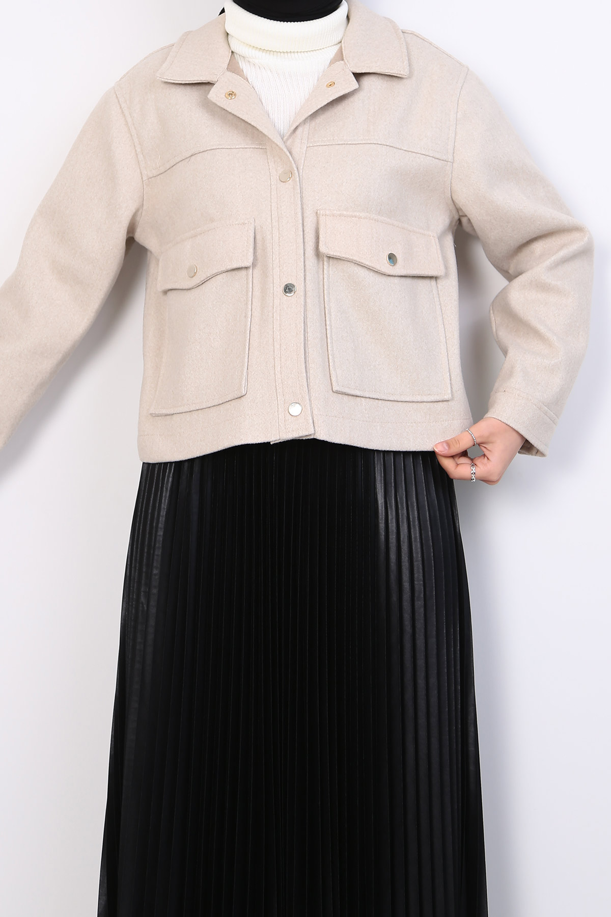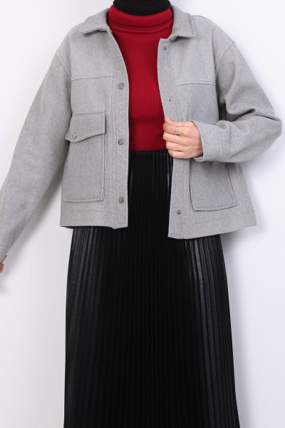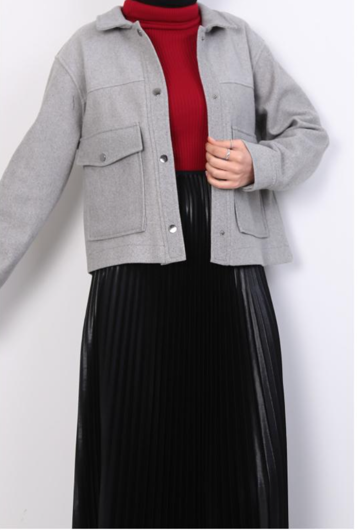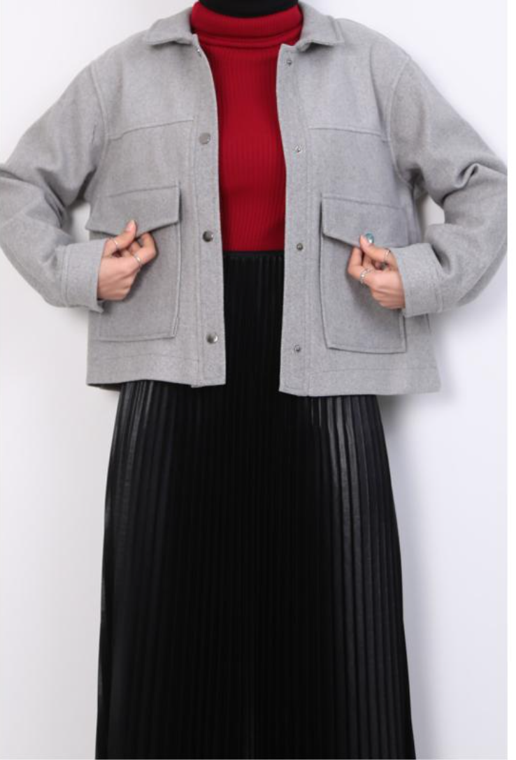 Description: Stay cozy and stylish with our Snap Closure Double Pocket Kaşe Jacket (PN24K31468_036) in the Fall-Winter collection. The kaşe fabric provides warmth, and the snap closures add a modern touch. Ideal for a wide range of sizes (S-XL) to suit your preferences.