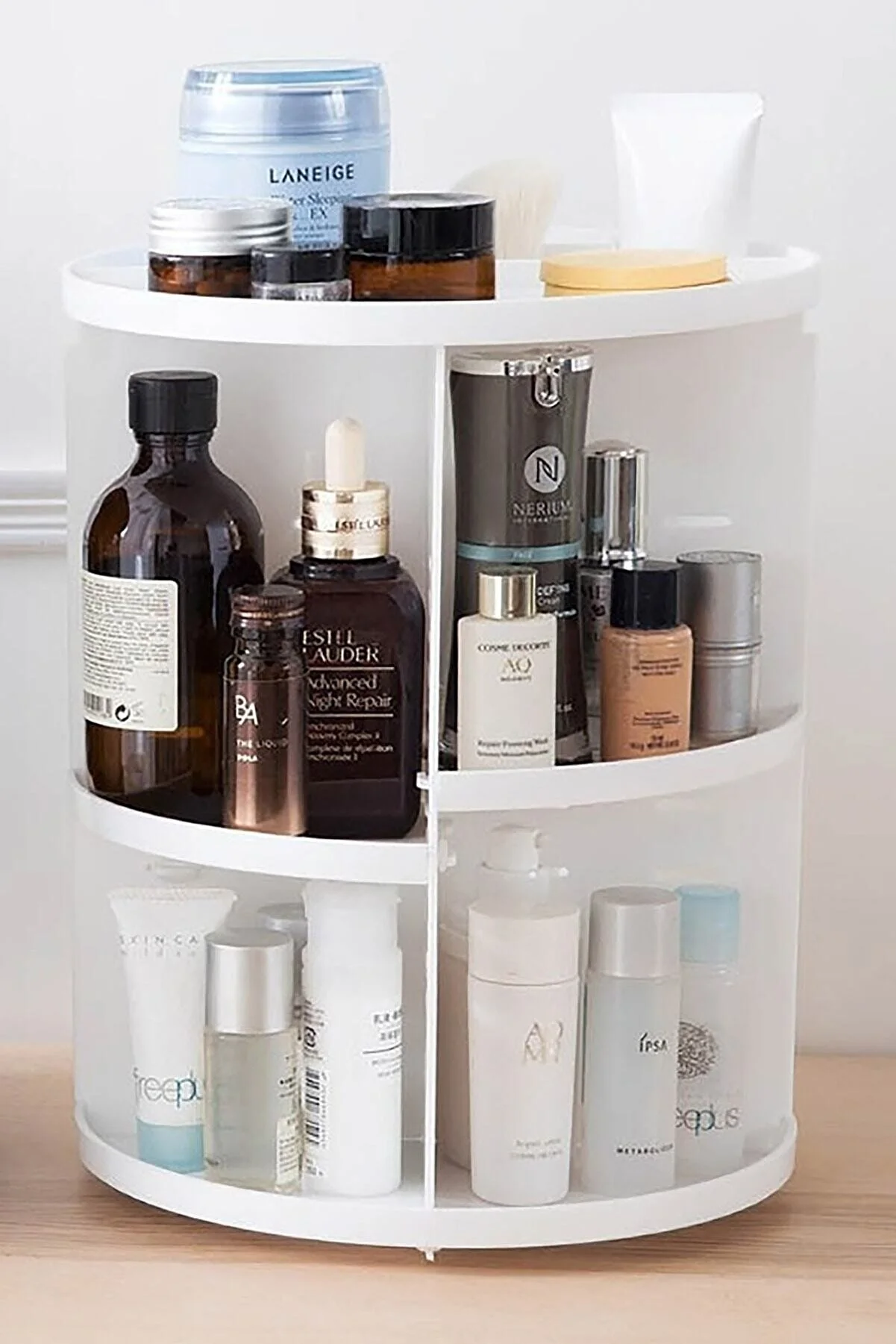 The organizer features a 360-degree rotation function, allowing you to easily reach all your items without the need to move the entire organizer.