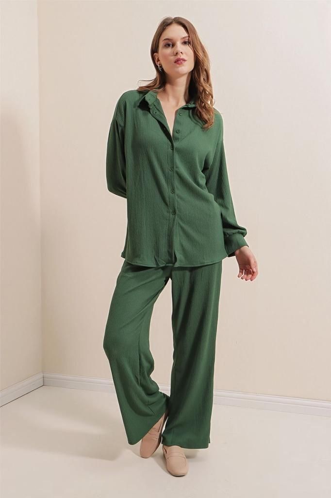 هذا البدلة المكونة من بنطلون وبلوزة مناسبة لارتداء اليومي في فصل الصيف. تصميمها خفيف الوزن ومصنوع من خامات عالية الجودة لتوفير الراحة طوال اليوم. تتميز البلوزة بتصميم جذاب وألوان جميلة، كما تتوفر بعدة مقاسات لتناسب جميع الأذواق. البنطلون أيضًا يتميز بتصميم جذاب ومريح للغاية ومتوفر بعدة مقاسات. تعتبر هذه البدلة خيارًا مثاليًا للنساء اللواتي يرغبن في الحصول على إطلالة جذابة وعصرية في الصيف.