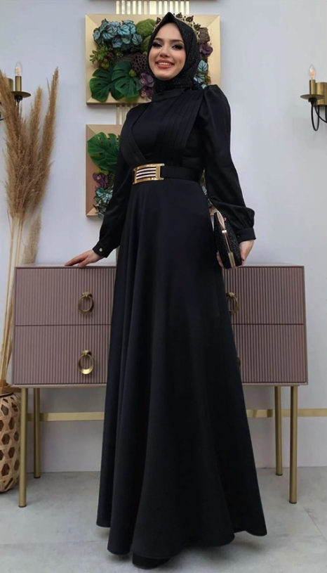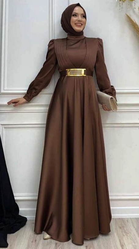 TRENDTESETTÜR Women's Burgundy Belted Draped Detailed Satin Evening Dress T 2973.