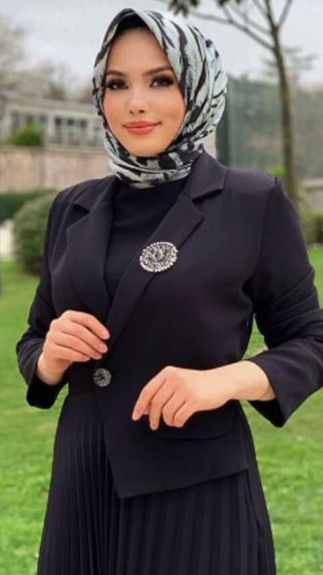 Model Information: Height:1.75 Bust:85 Waist:63 Hips:92 Fabric Information: 95% polyester 5% lycra Product Length: 141 cm. The product is unlined. The product has a side zipper. The shoulders of the product are padded. Size on Mannequin: Size 38. Product fabric: It is made of summer fabric. Accessories are not included in the product. Product colors may vary on some products due to differences in shooting light or color settings on monitor/phone screens.
