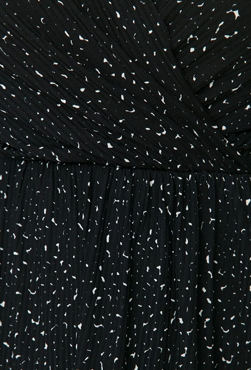 Trendyol Curve Black A-line Knitted Double Breasted Collar Polka Dot Dress
