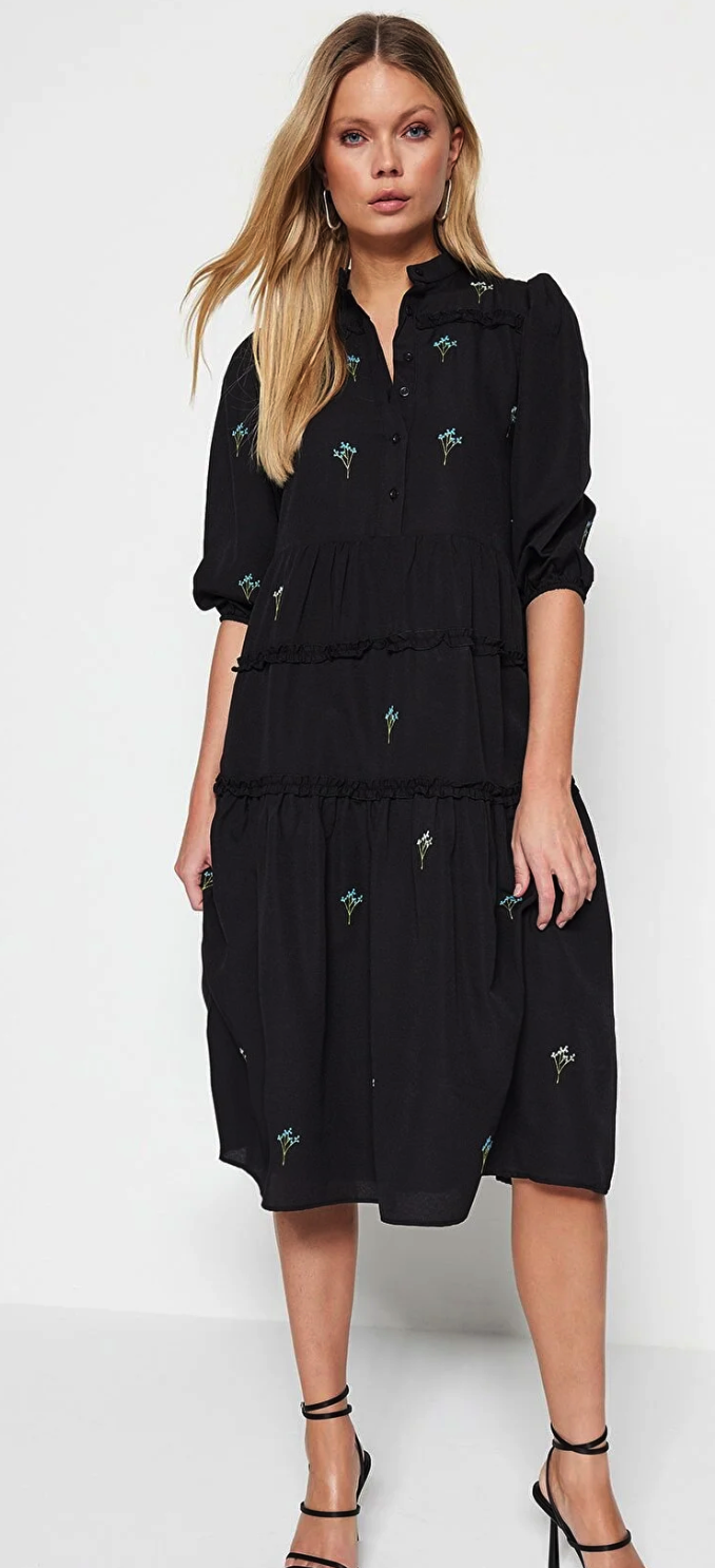 TRENDYOLMİLLA Black Midi Woven Embroidery Dress