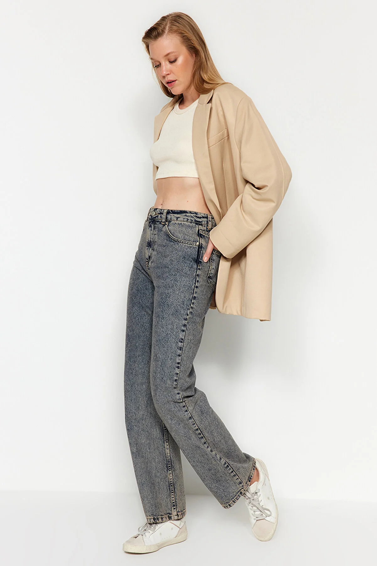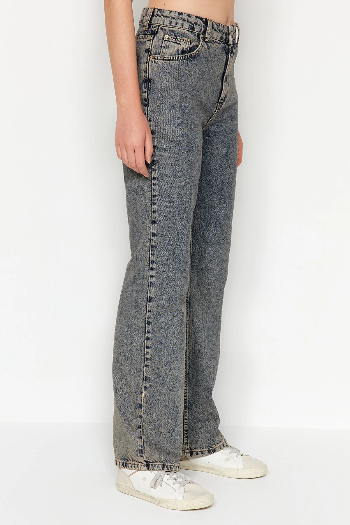 Revive the vintage vibe with TRENDYOLMİLLA's Light Blue Vintage Effect High Waist Wide Leg Jeans. Crafted from 99% cotton and 1% elastane woven fabric, these jeans feature a button and zipper closure, providing both style and comfort. The high waist and wide leg design contribute to a chic and retro look, making them a versatile addition to your wardrobe. With an inseam measurement of 82 cm, these jeans offer a fashionable and comfortable option for various occasions. Perfect for creating trendy and unique outfits.