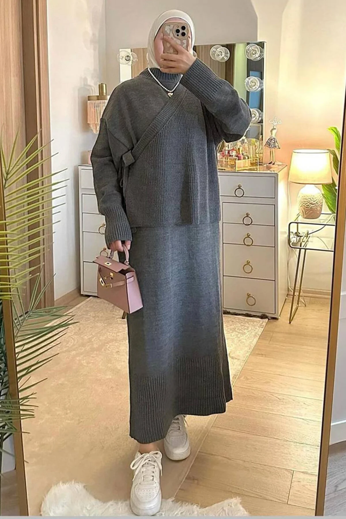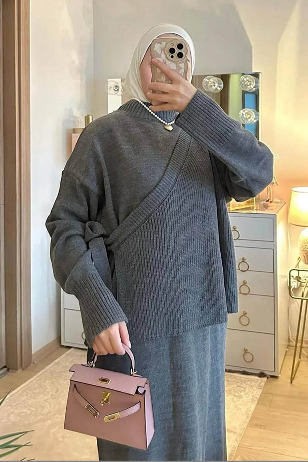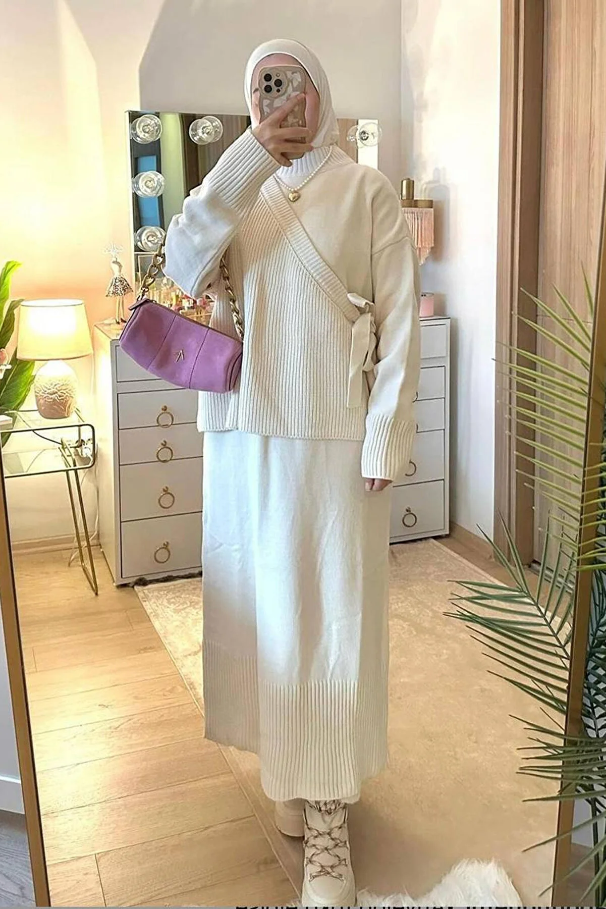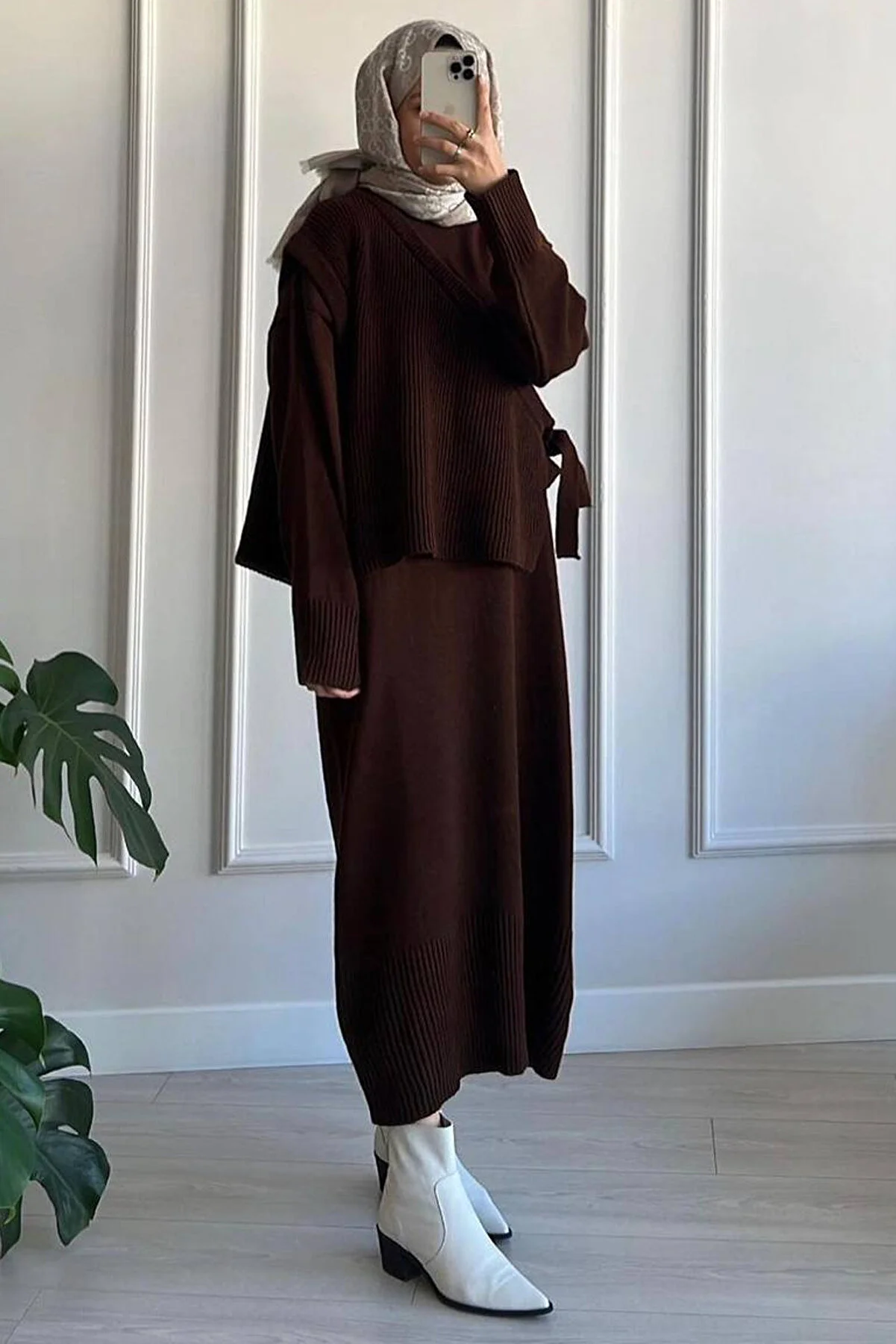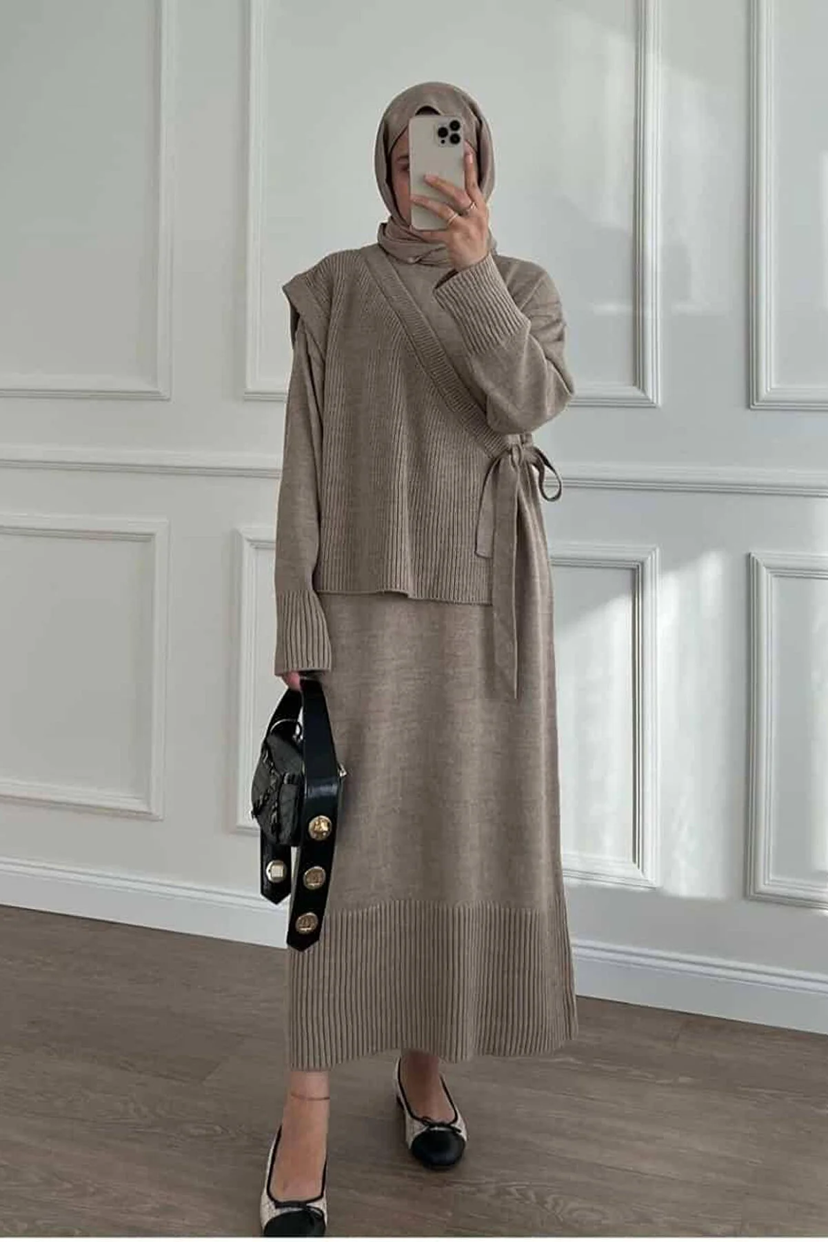 Elevate your modest wardrobe with the Istanbul Style Moda 2-piece knit hijab dress and sweater set in a sophisticated vizon shade (TKM2404). Designed for a comfortable fit up to size 48, this tricot ensemble features a dress with a length of 130 cm and a coordinating sweater measuring 58 cm. The high-quality knit fabric ensures both style and comfort, making it a versatile choice for various occasions. Embrace modest fashion with this elegant and coordinated hijab dress and sweater set from Istanbul Style Moda.