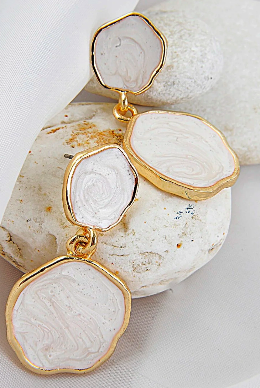 Dora Accessories White Enamel Minimal Design Flower Gold Color Earrings
