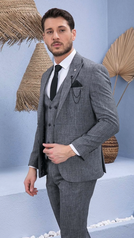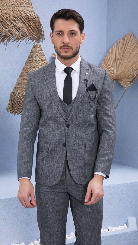 Vito Andolini Gray Patterned Slim Fit Vest Men's Suit